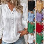 2023 Independent station wish Amazon explosions autumn long sleeve V-neck lace stitching shirt women’s shirt women’s clothing