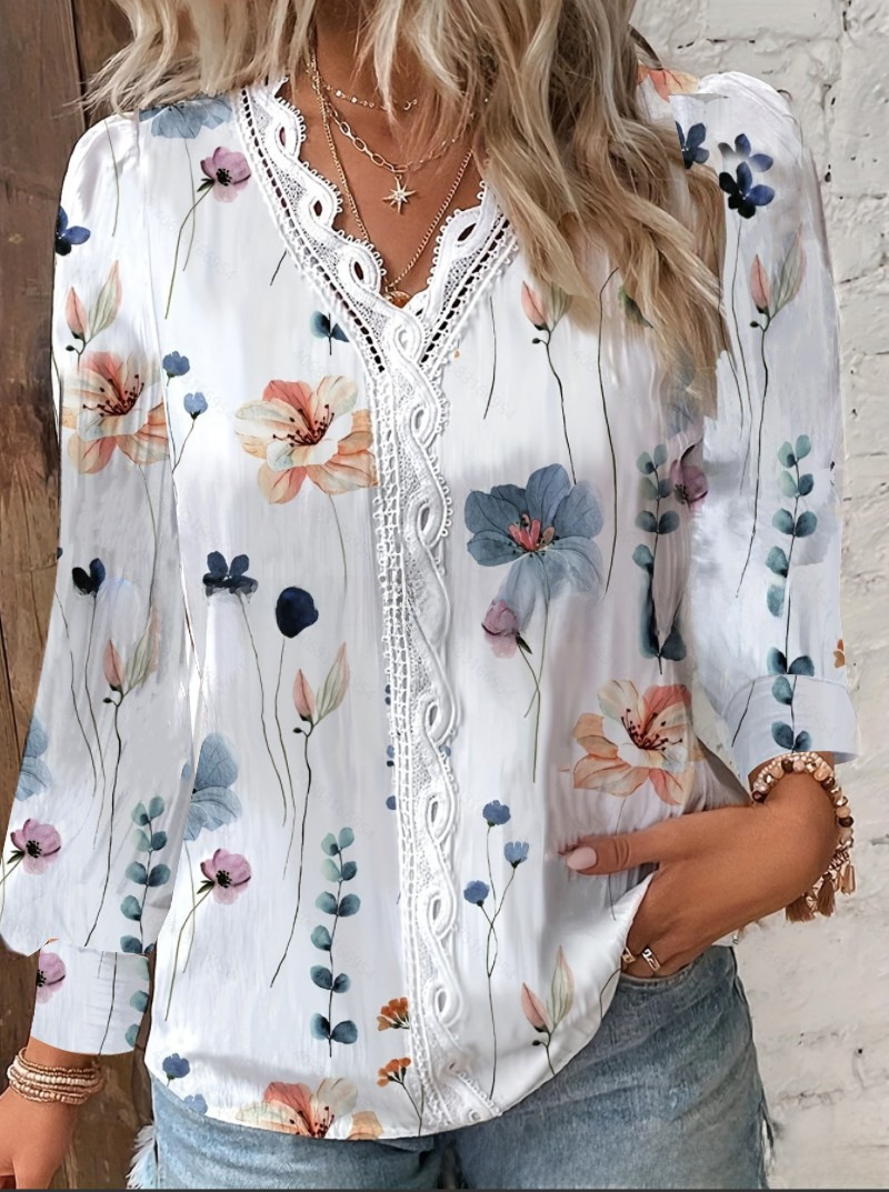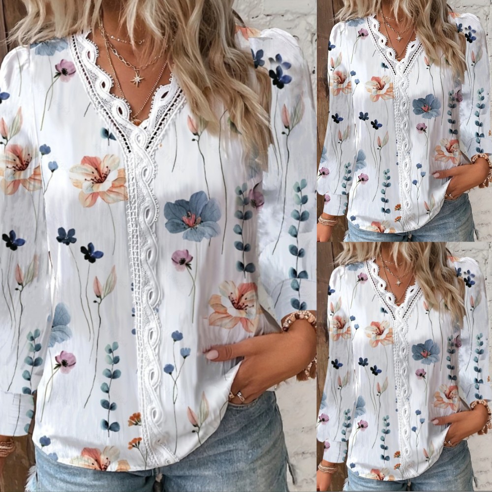 | nameOriginal | 2023 Independent Station wish Amazon Explosions Autumn New Long Sleeve V-Neck Lace Stitching Shirt Shirt Women |