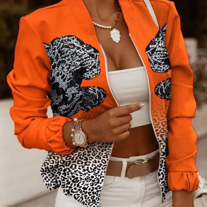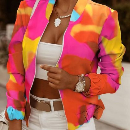 2023 Independent station wish Amazon new autumn long sleeve zipper decorative cardigan printed coat small coat