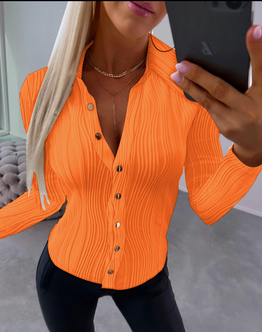 | nameOriginal | 2023 Independent station wish Amazon popular autumn long sleeve sexy V-neck solid color women's shirt women's shirt |