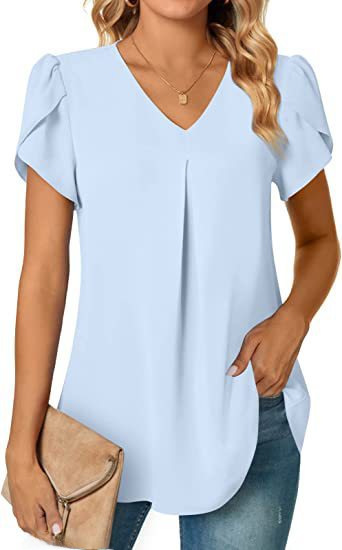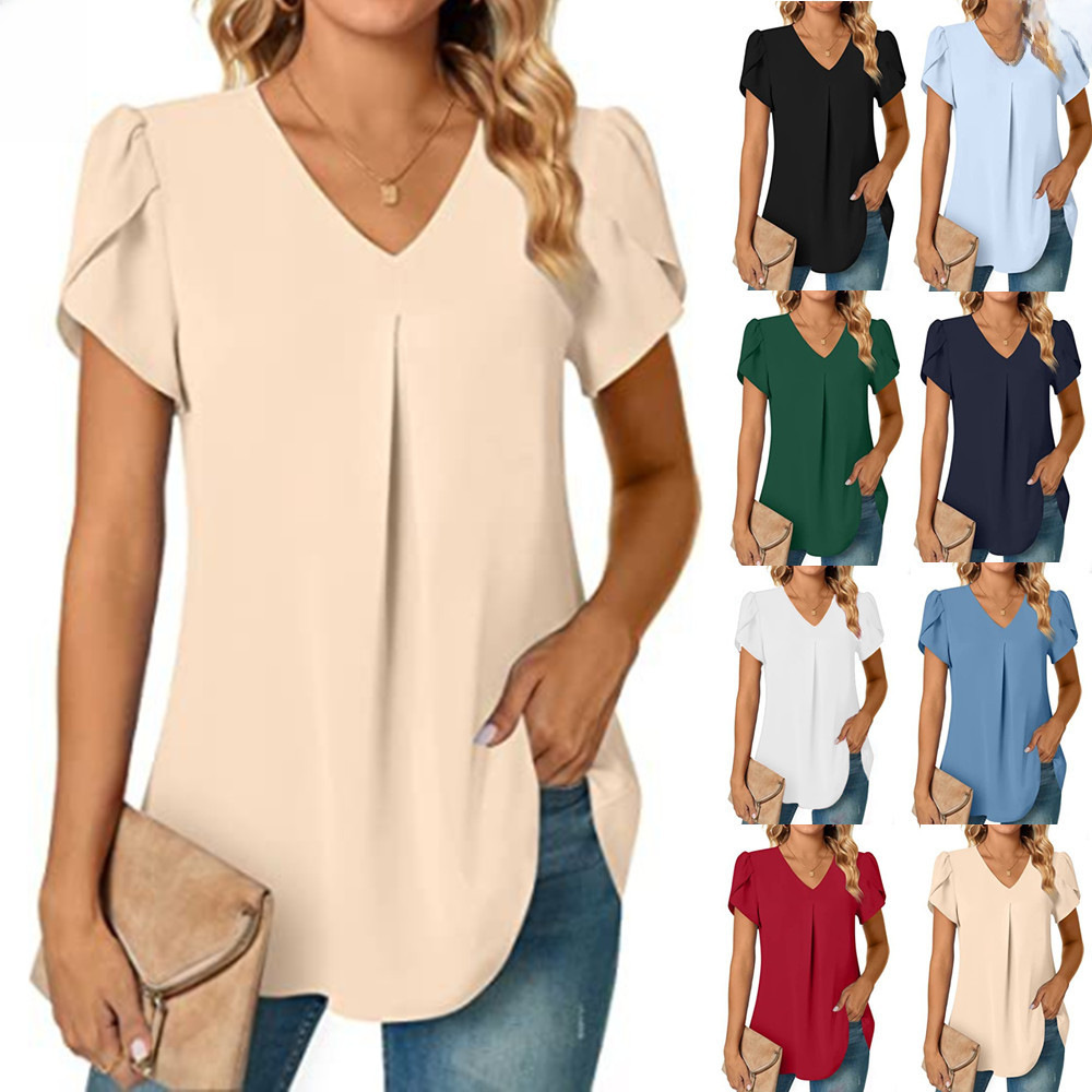 | nameOriginal | 2023 Independent station wish Amazon popular summer simple women's V-neck petal sleeve shirt women's shirt |