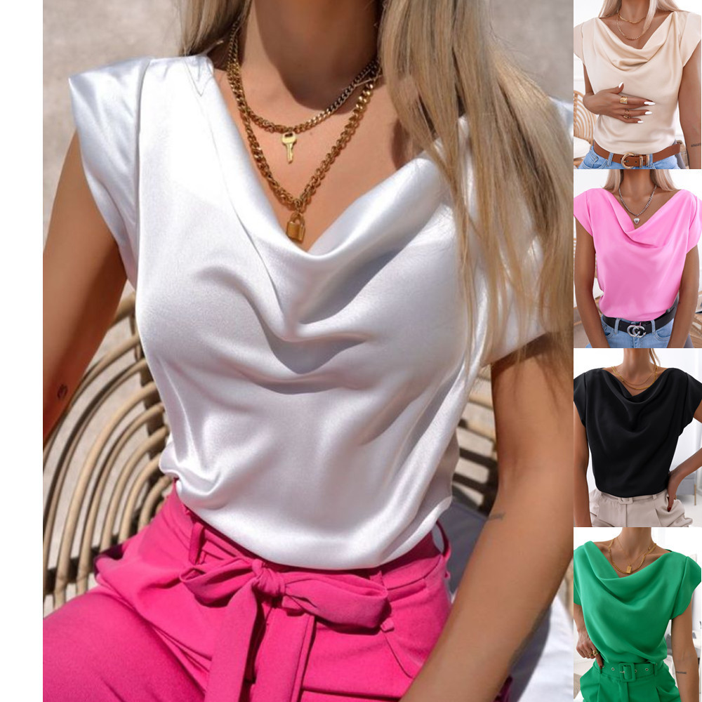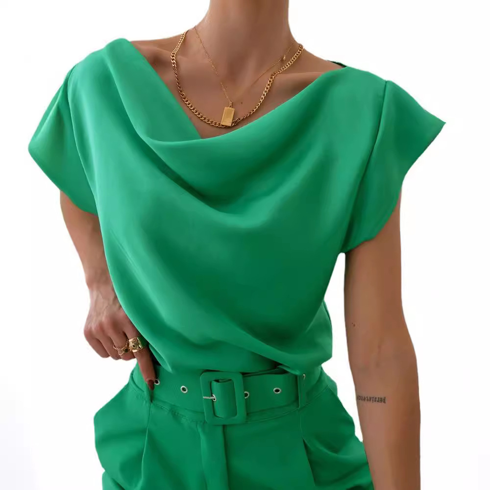 | nameOriginal | 2023 Independent station wish Amazon summer solid color simple short sleeve swing collar women's shirt top women |
