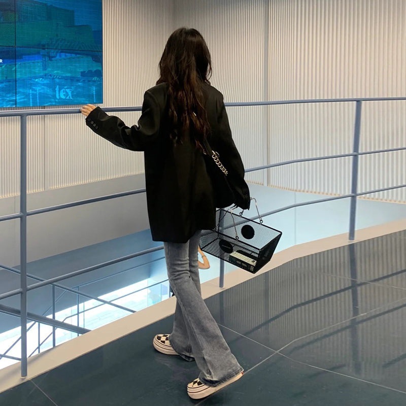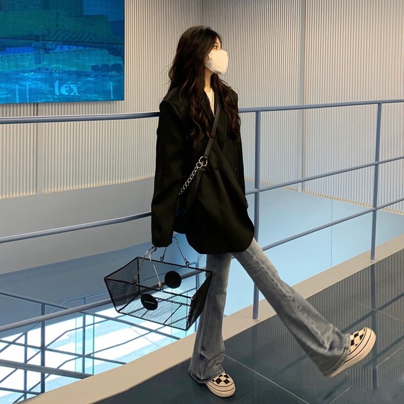 2023 Korean Style Casual All-match Black Suit Jacket Women’s Autumn and Winter Loose High-end Small Suit Jacket