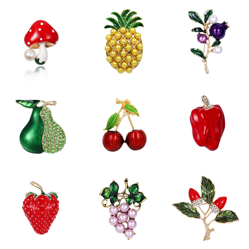 | nameOriginal | 2023 Korean style new fashion oil dripping painted fruit brooch alloy Diamond-embedded corsage women's clothing pin wholesale |