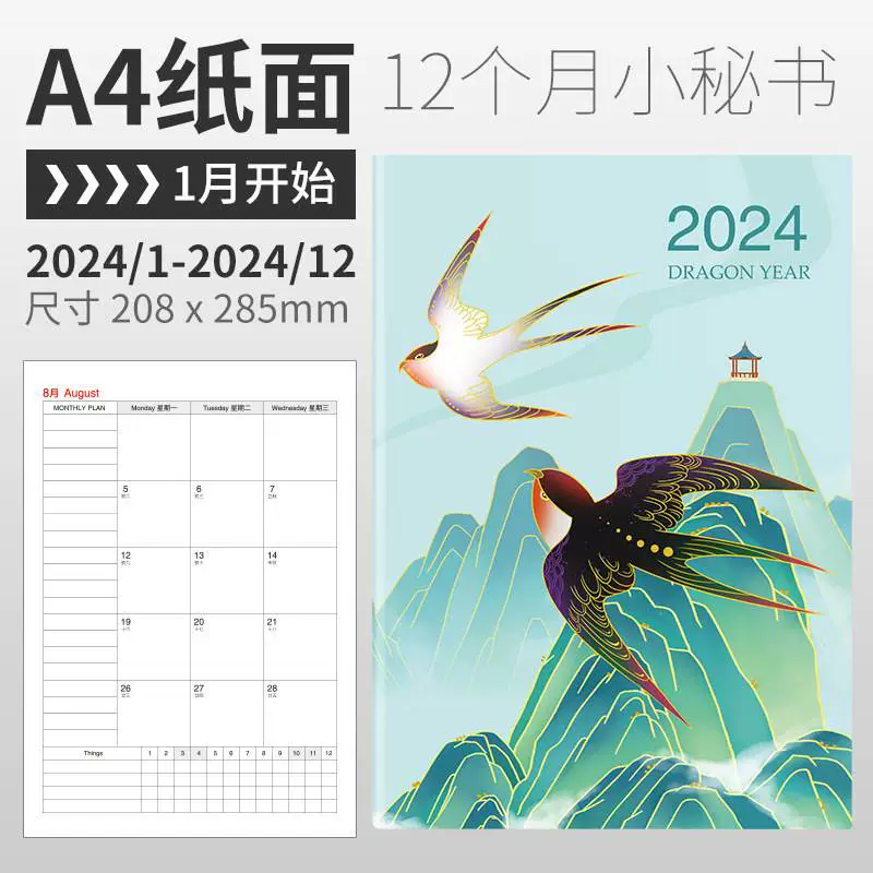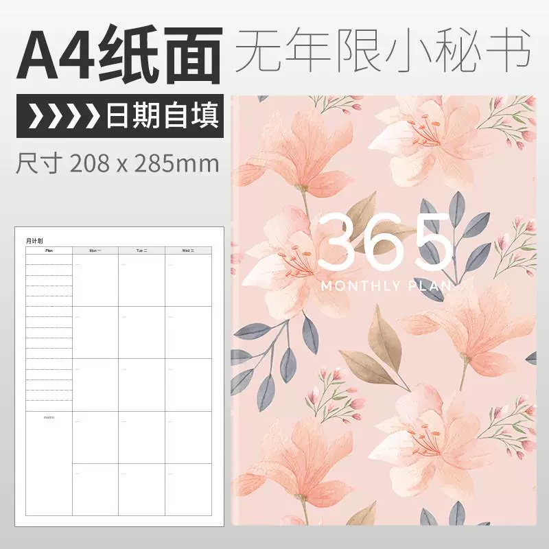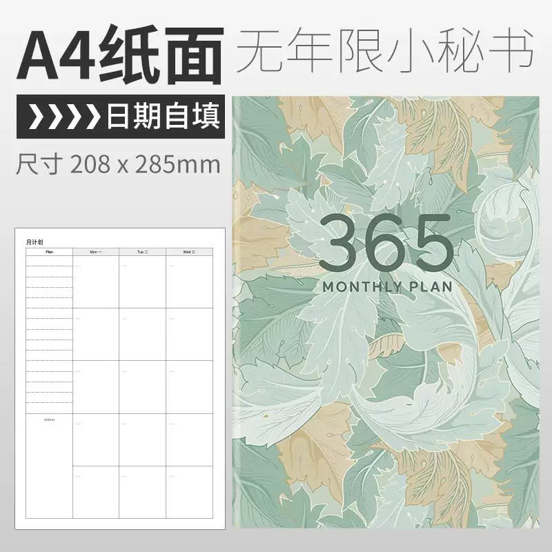 2023 Little Fresh Leaves Monthly Planner Flower Work Secretary A4 Check-in Book Little Girl’s Heart Diary Book