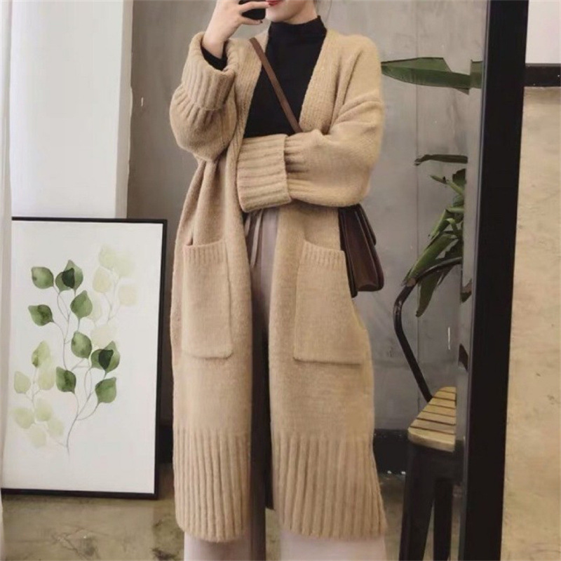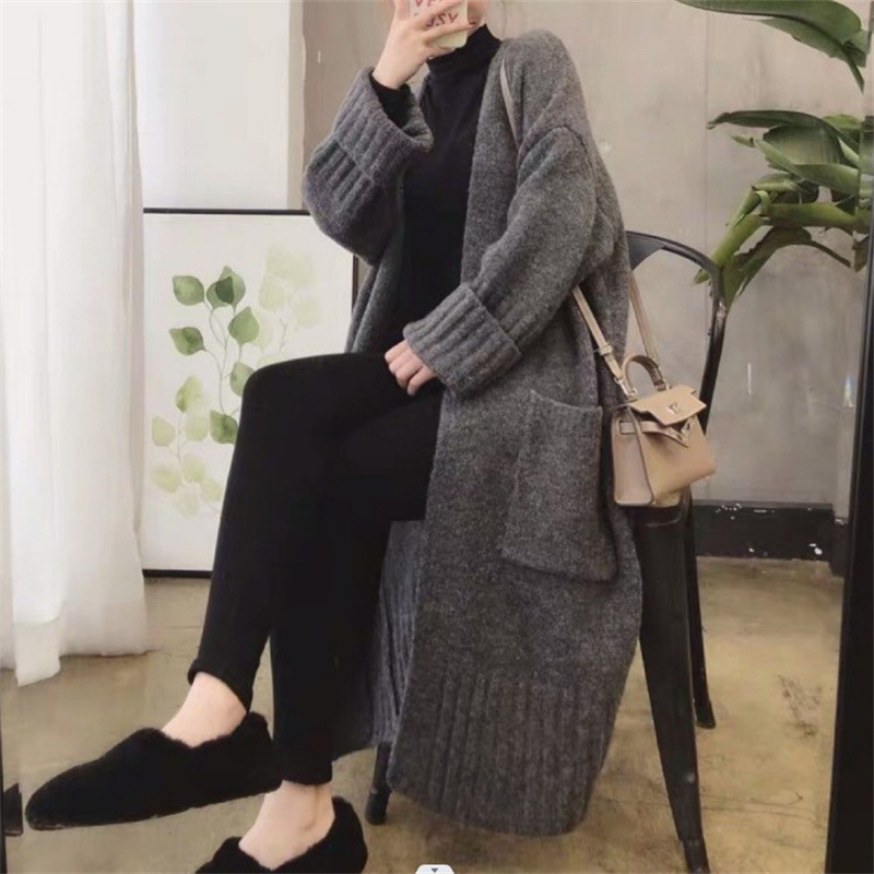 2023 manufacturers Autumn New Korean version of loose over-the-knee lazy wind long knitted sweater thick cardigan coat women