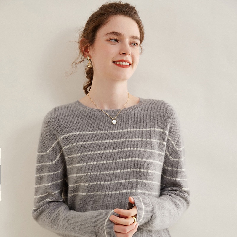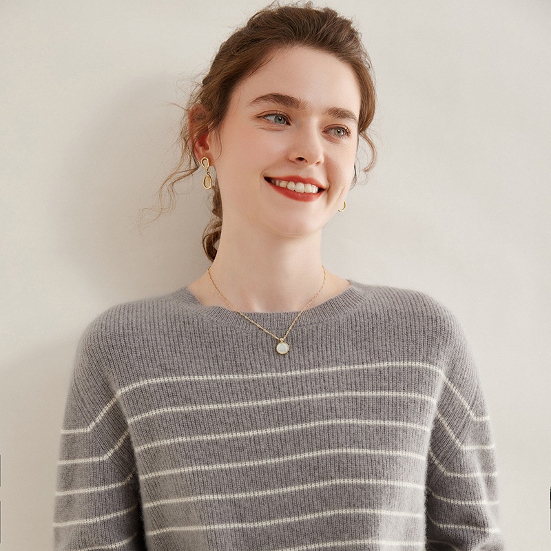| nameOriginal | 2023 new 100 cashmere sweater women's round neck loose striped bottoming shirt autumn and winter pullover Western style knitted sweater |