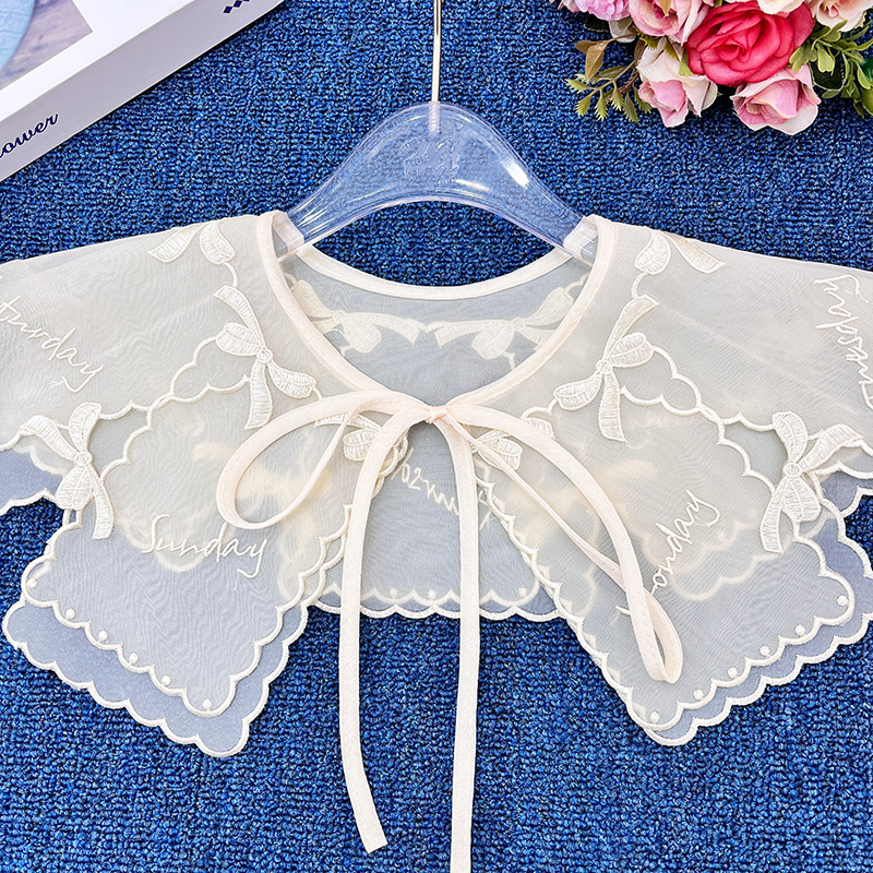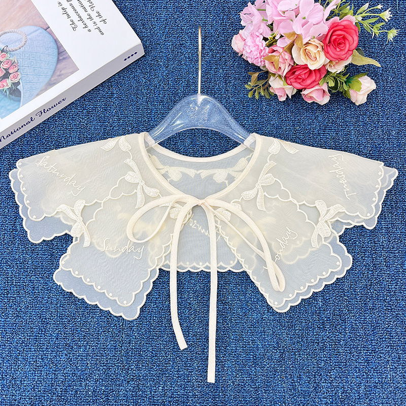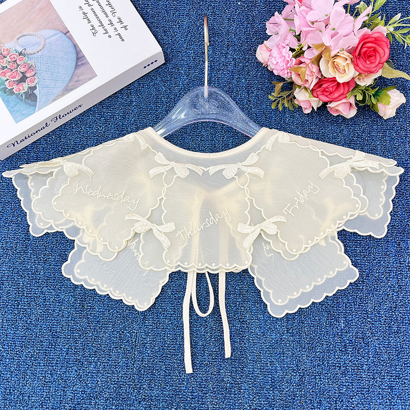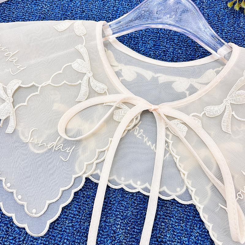 | nameOriginal | 2023 new apricot collar flower double-layer organza embroidered lace bow fake collar shawl wholesale |