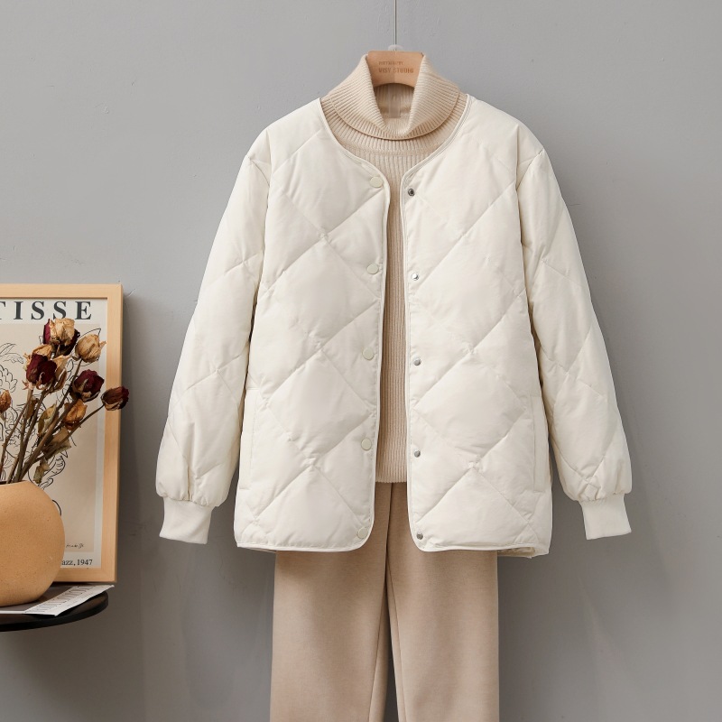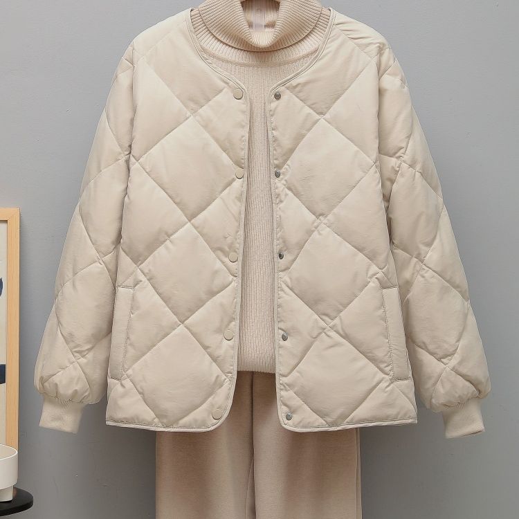| nameOriginal | 2023 New Arrival Rhombus Collarless Down Cotton-padded Jacket Women's Lightweight Short Loose Round Neck Spring Cotton-padded Jacket |