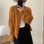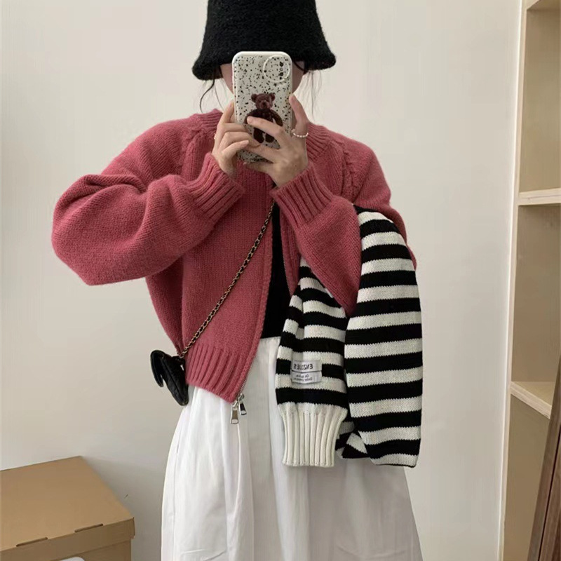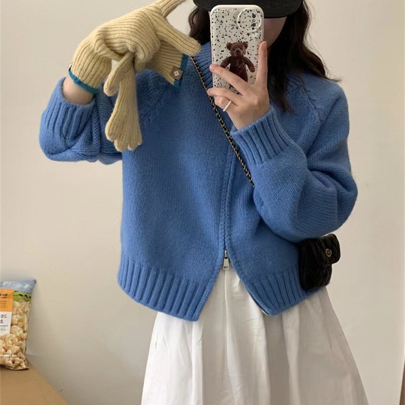 2023 new autumn and winter New thick short knitted cardigan women’s round neck double-headed zipper soft glutinous sweater coat women