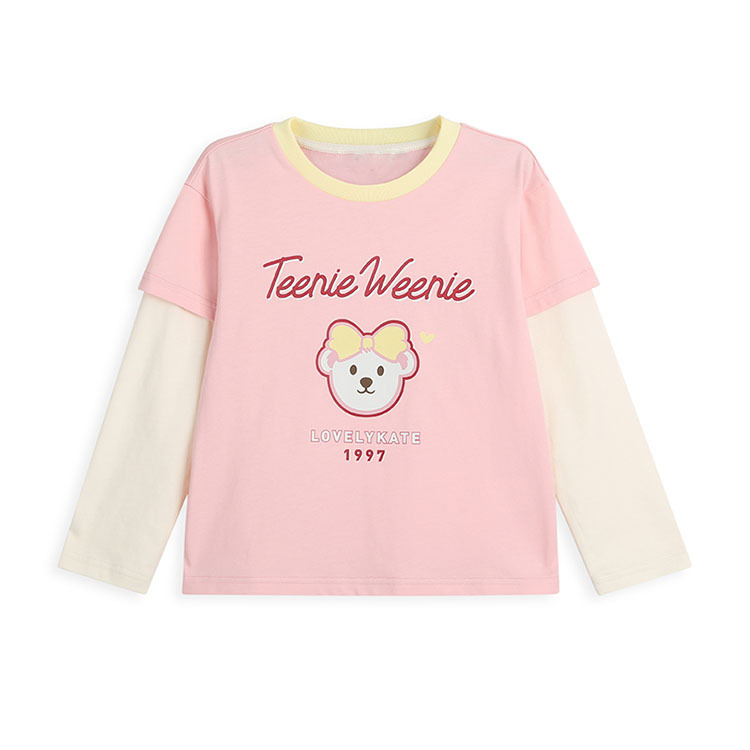 | nameOriginal | 2023 new autumn tw bear children's clothing color matching fake two-piece girls' sweater cartoon printed round neck long sleeve T-shirt |