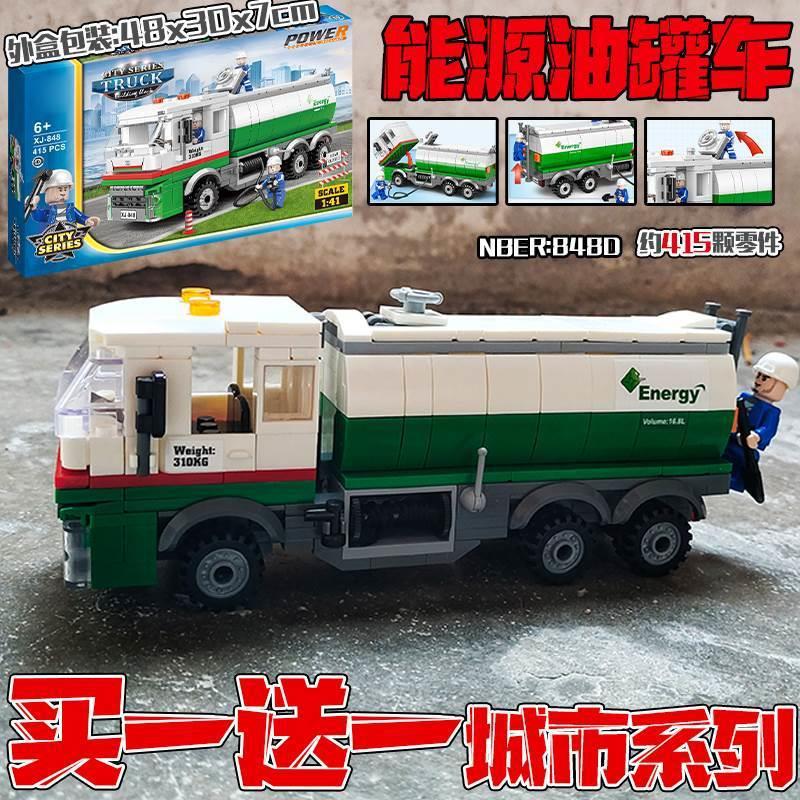 2023 new building blocks Car City Series oil tanker children assembled engineering vehicle toys 3 to 6 years old tractor