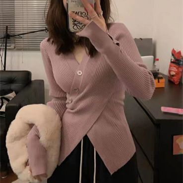 2023 new casual niche unique chic spring and autumn inner wear cross V-neck pit bottoming sweater women’s outer wear