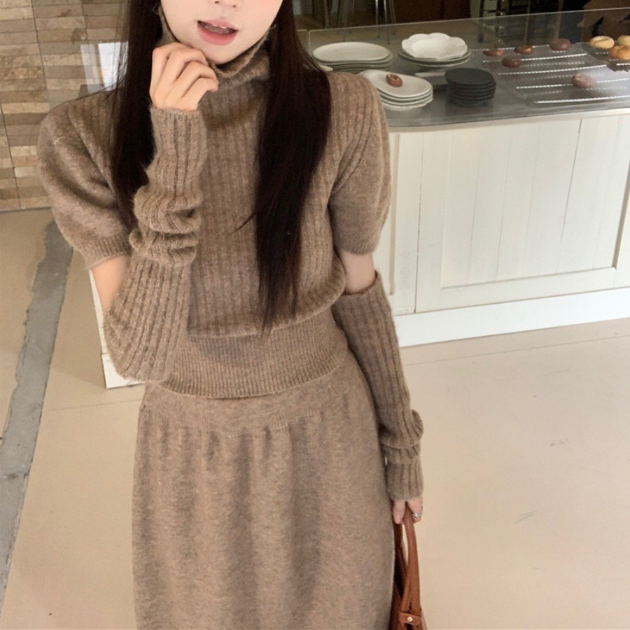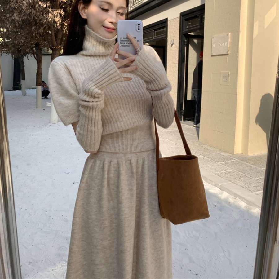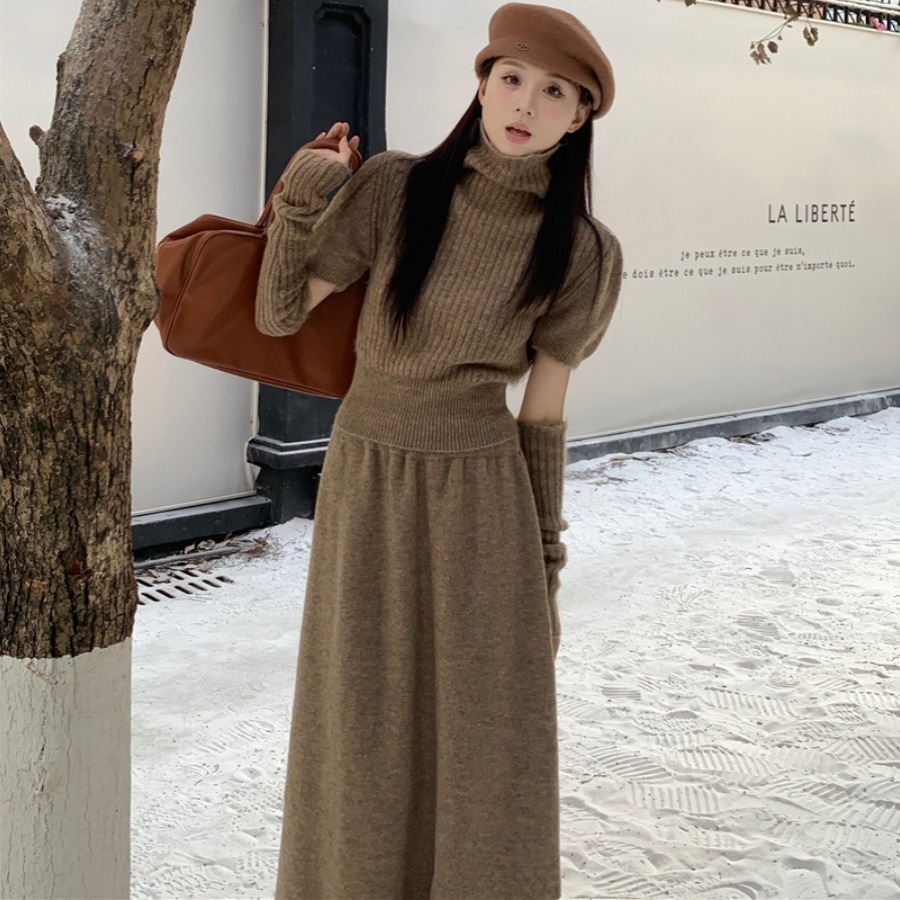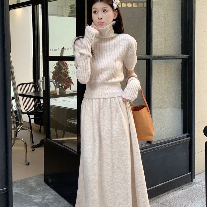 | nameOriginal | 2023 new casual suit women's turtleneck sweater with oversleeves winter high waist A- line skirt two-piece set |