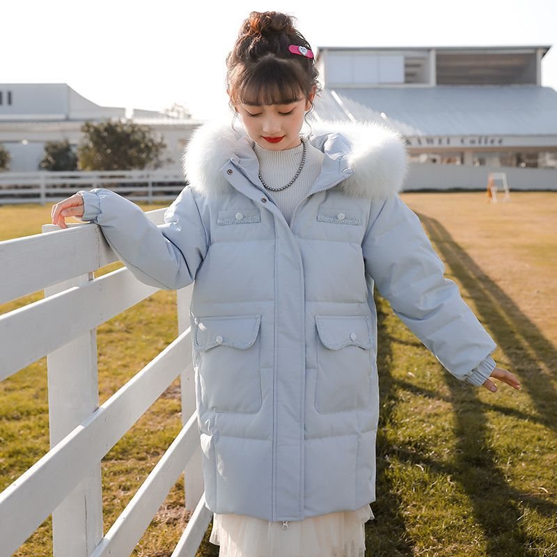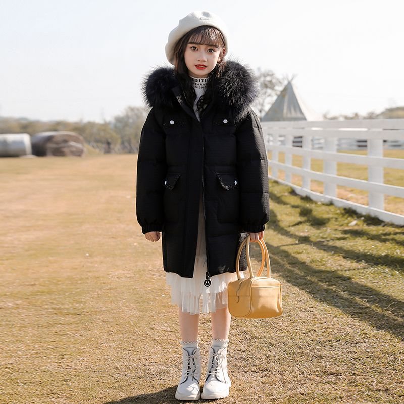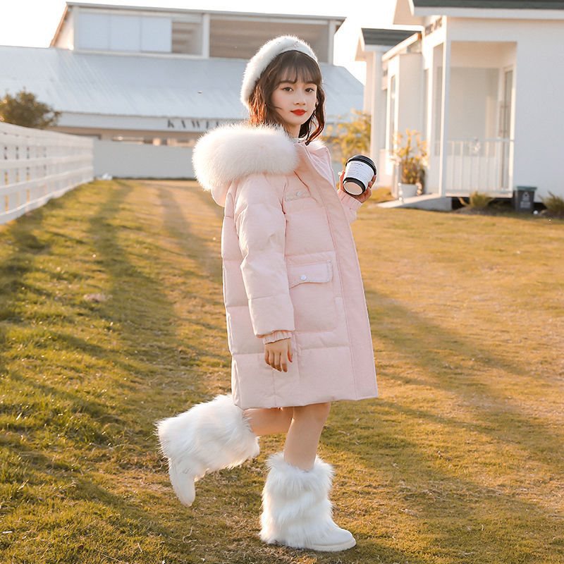 2023 New Children's Down Jacket Women's Mid-length Winter Thickened Western Style Women's Large Wool Collar Korean Style Coat