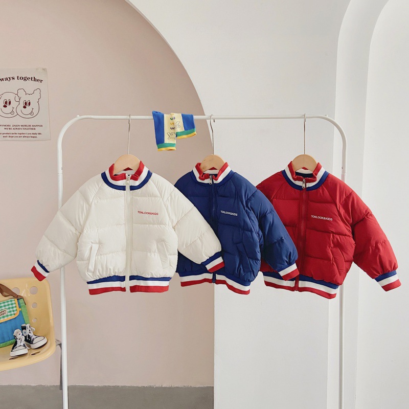 2023 new children's fashion thickened warm baseball uniform Korean autumn and winter cotton-padded coat winter color matching boys and girls cotton-padded jacket