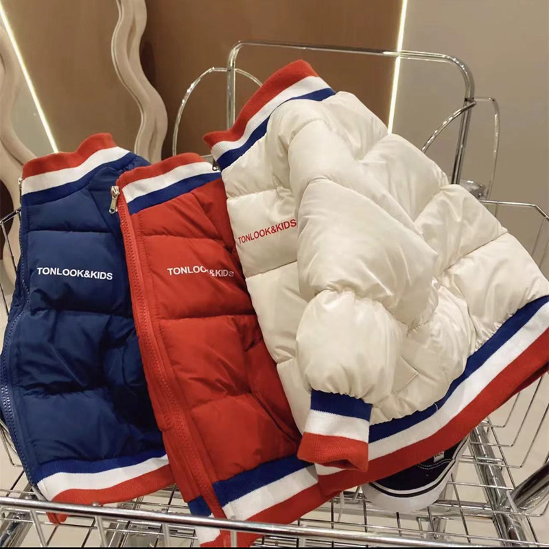 2023 new children’s fashion thickened warm baseball uniform Korean autumn and winter cotton-padded coat winter color matching boys and girls cotton-padded jacket