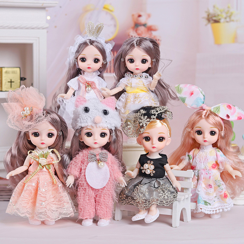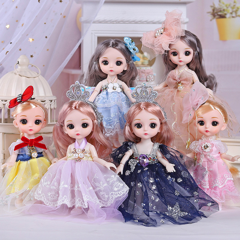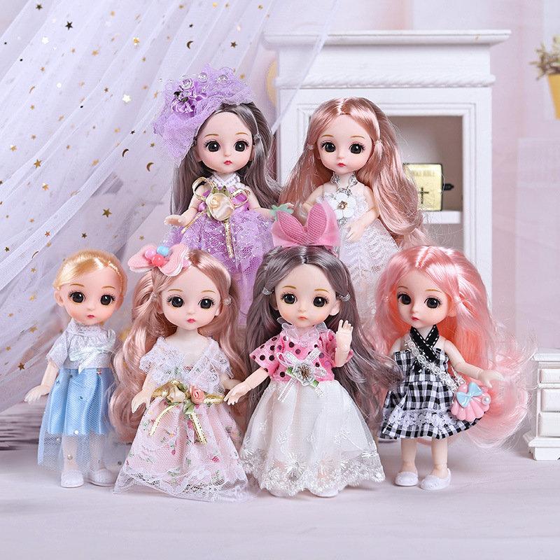 2023 new combination 16cm princess doll 6-piece combination little girl dressing home wine toy gift