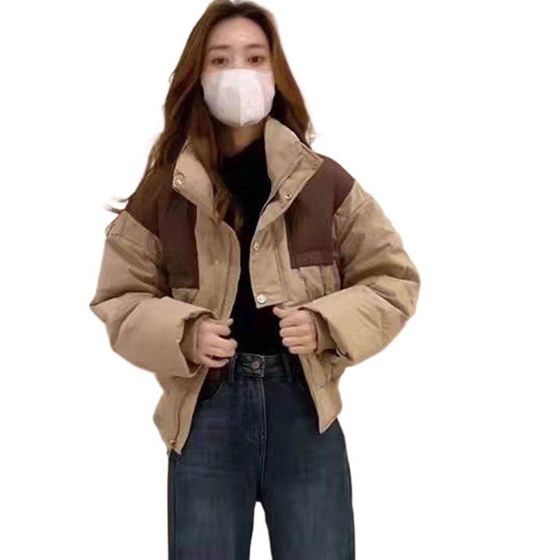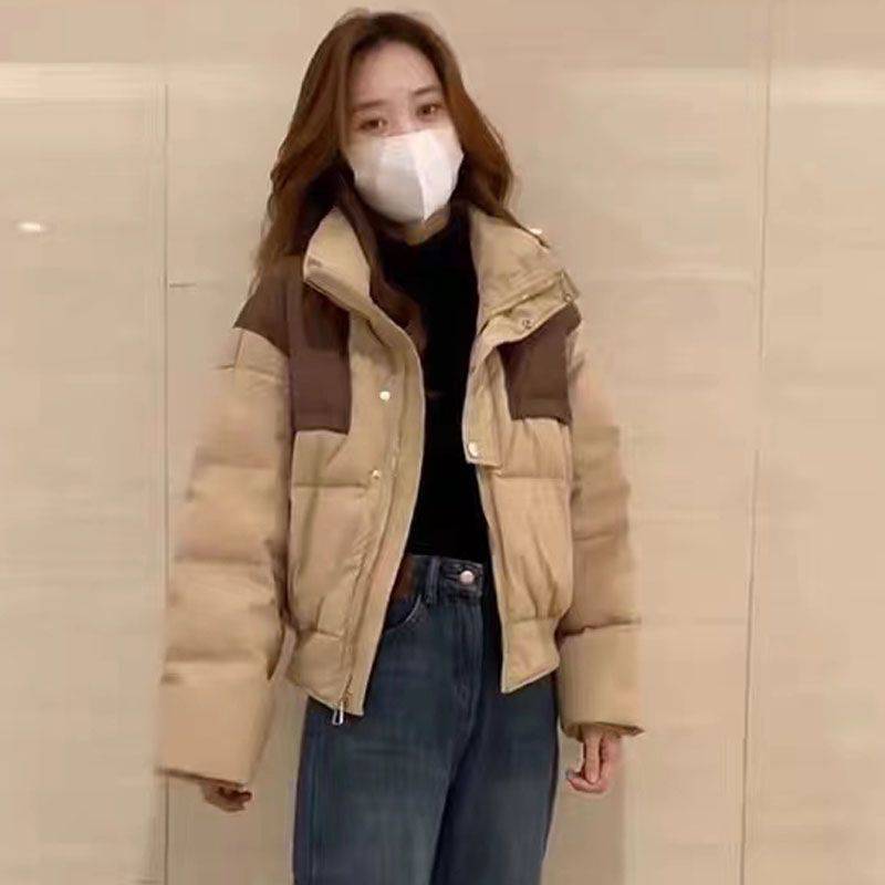 2023 new contrast color short bread coat cotton-padded coat women's small versatile simple sweet style warm cotton-padded coat fashion