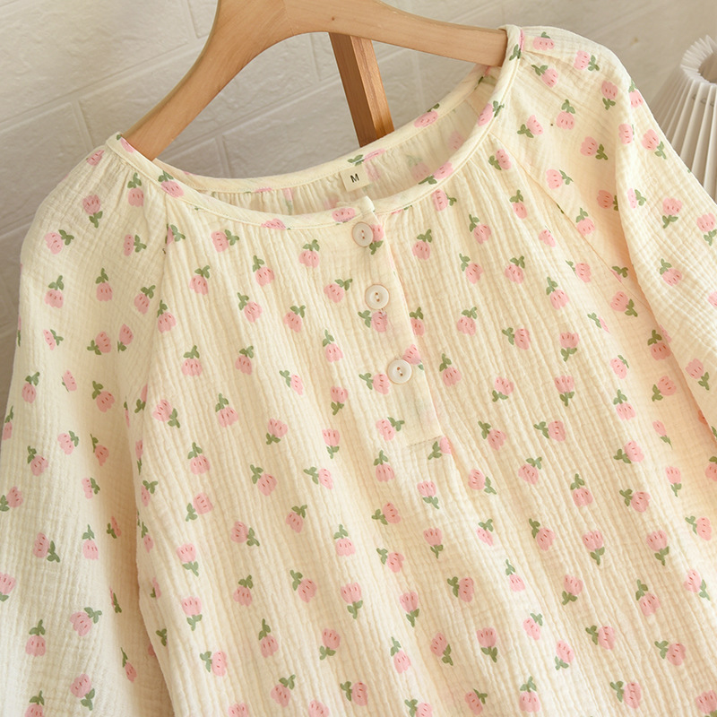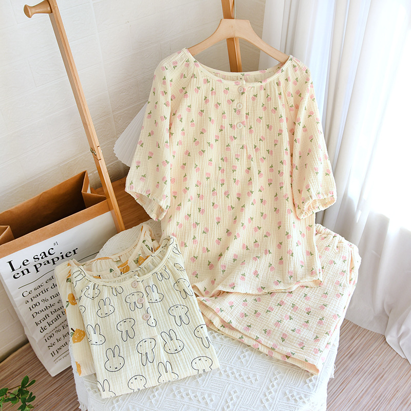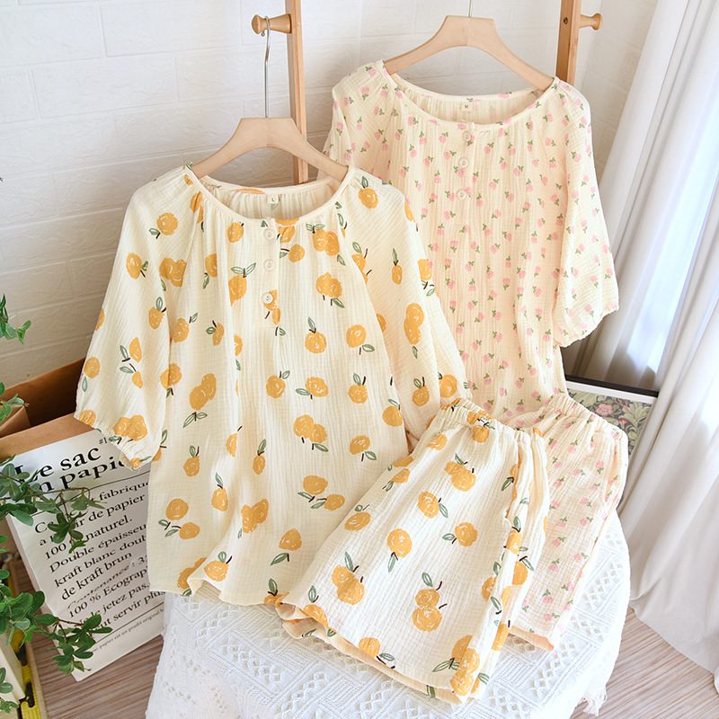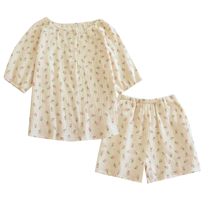 | nameOriginal | 2023 New Crepe Double-layer Yarn Pure Cotton Pajamas Women's Summer Short-sleeved Shorts Floral Home Clothes Set for Hair |