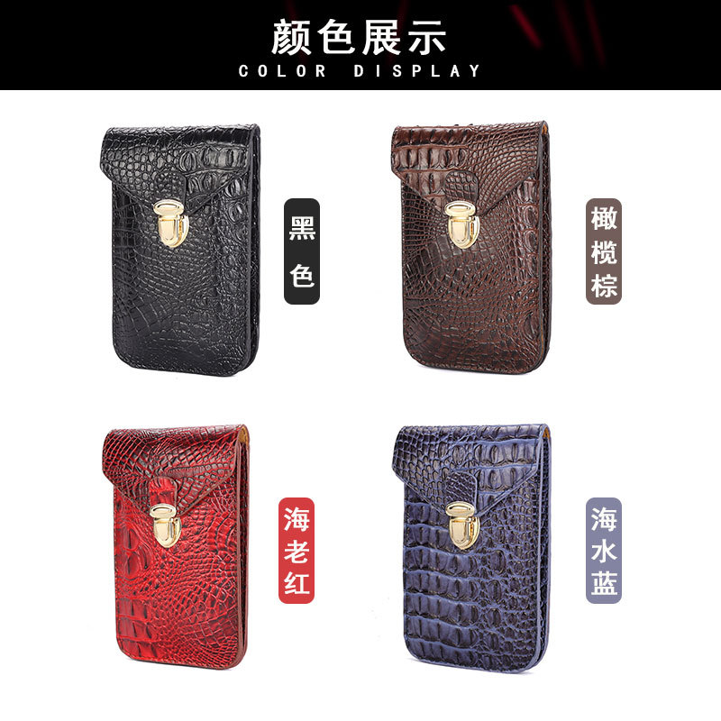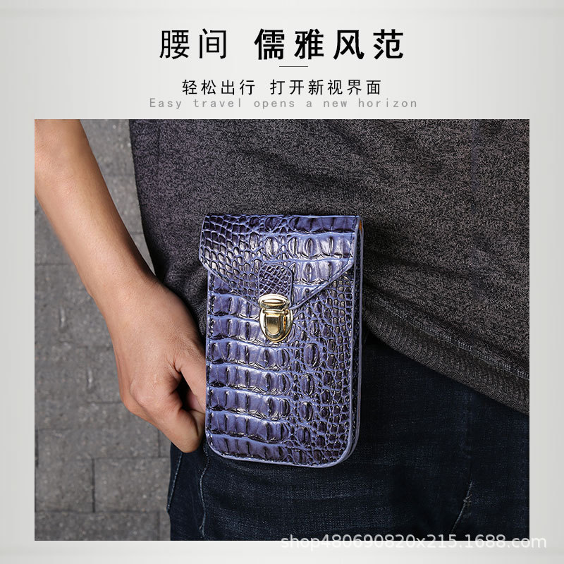 | nameOriginal | 2023 new crocodile pattern men's vertical horizontal wear belt mobile phone waist bag multi-layer construction site work outdoor leather case |