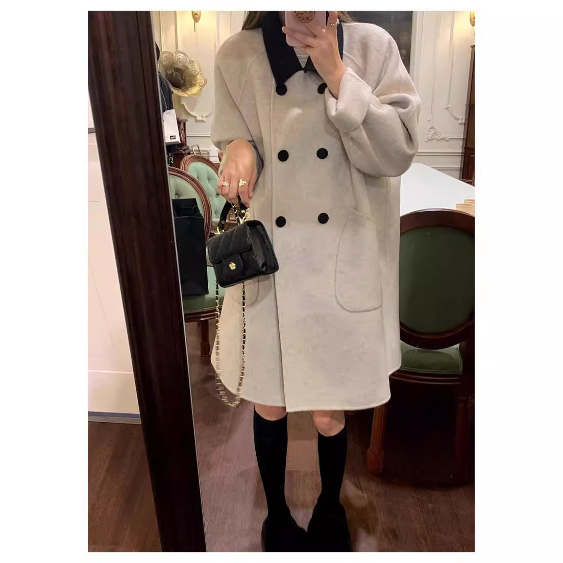 | nameOriginal | 2023 new double-sided cashmere overcoat Women's Mid-length small Hepburn style loose A- style cape woolen outer |