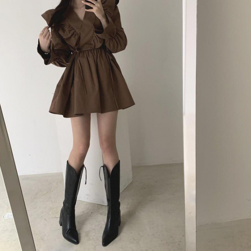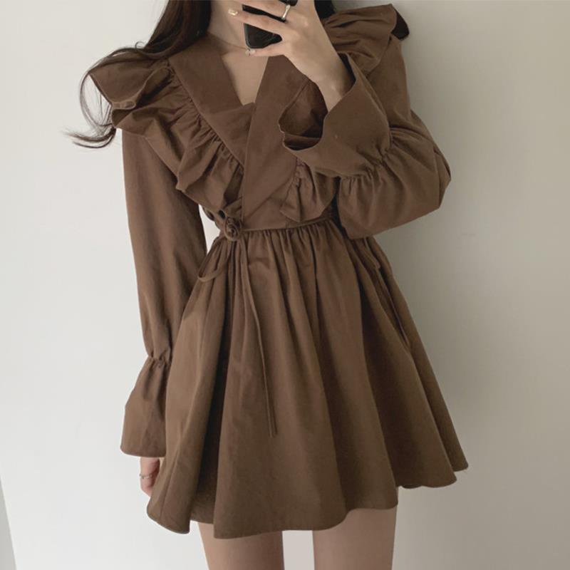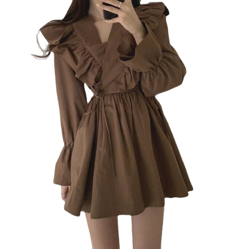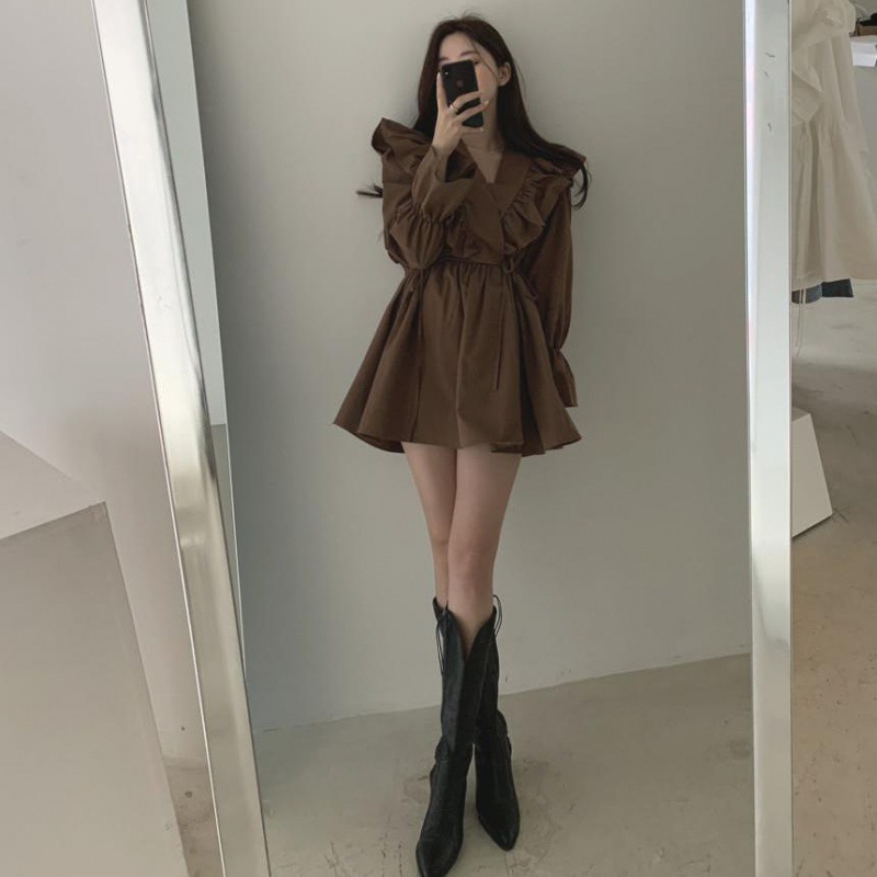 | nameOriginal | 2023 New Early Autumn Retro Collar Cross Ruffled Lace-up Waist Trumpet Sleeve Short Trendy for Small Men |