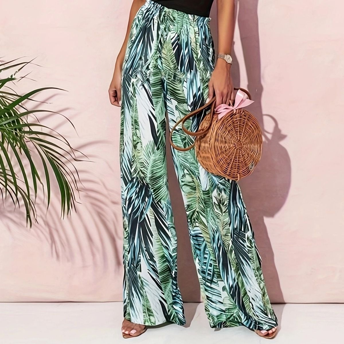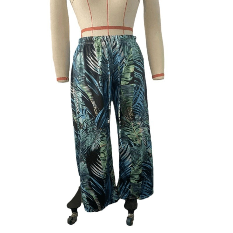 | nameOriginal | 2023 new european and american cross-border autumn and winter new women's printed trousers casual drawstring leaves printed straight pants women |