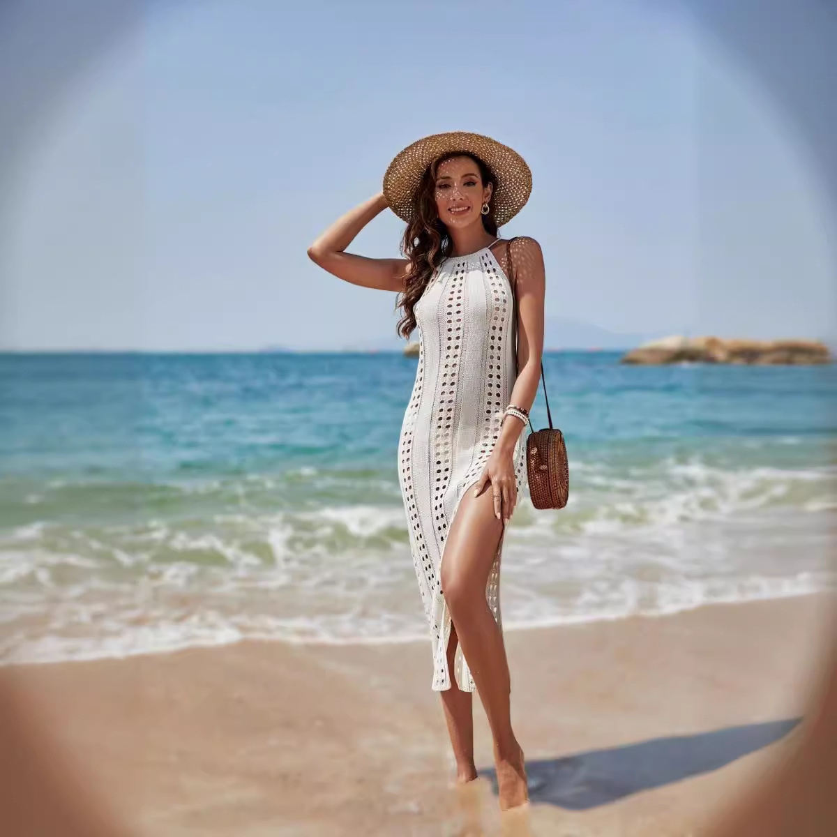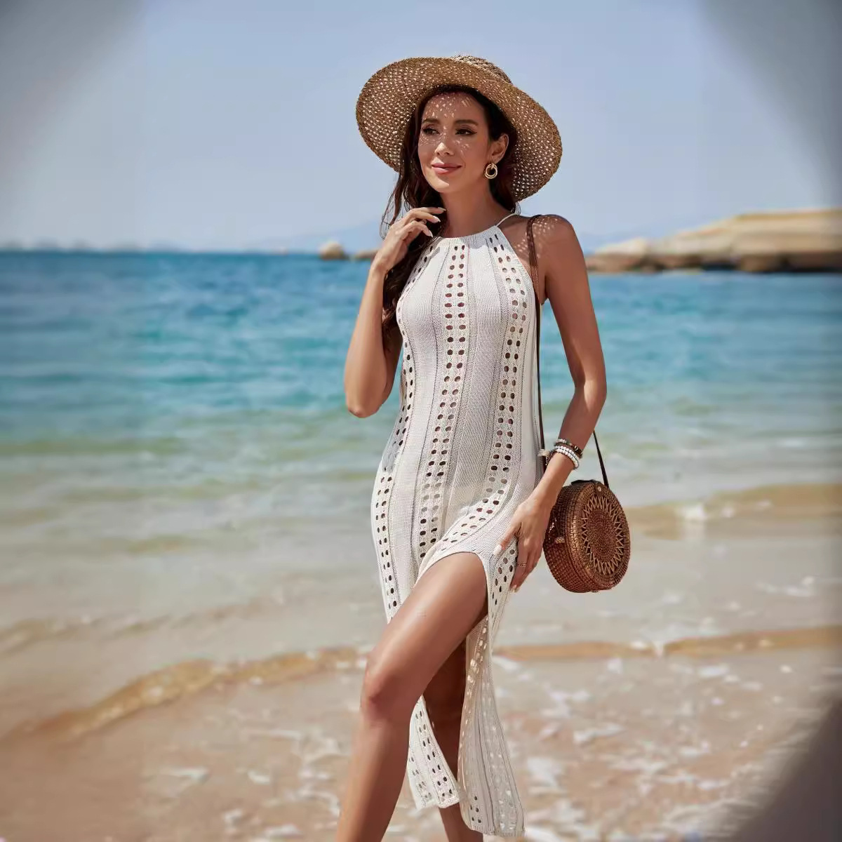 | nameOriginal | 2023 new European and American Foreign Trade side slit sling backless sexy hollow beach vacation knitted dress Beach |