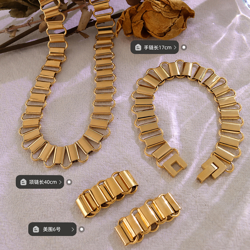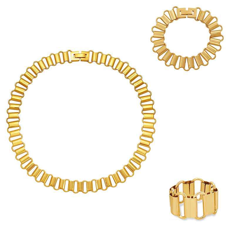 | nameOriginal | 2023 new European and American ins style personalized fashion hollow geometric ring necklace bracelet jewelry set plated with 18K gold |