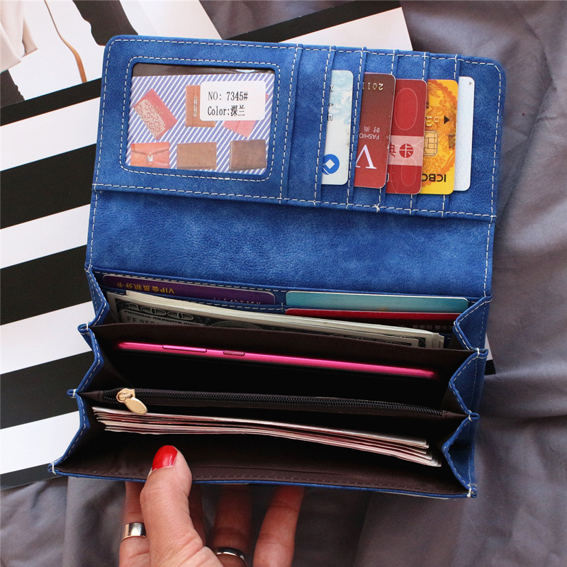 2023 New Fashion Korean Style Vintage Frosted Wallet Women’s Long Zipper Buckle Wallet Student Wallet Mobile Phone Bag