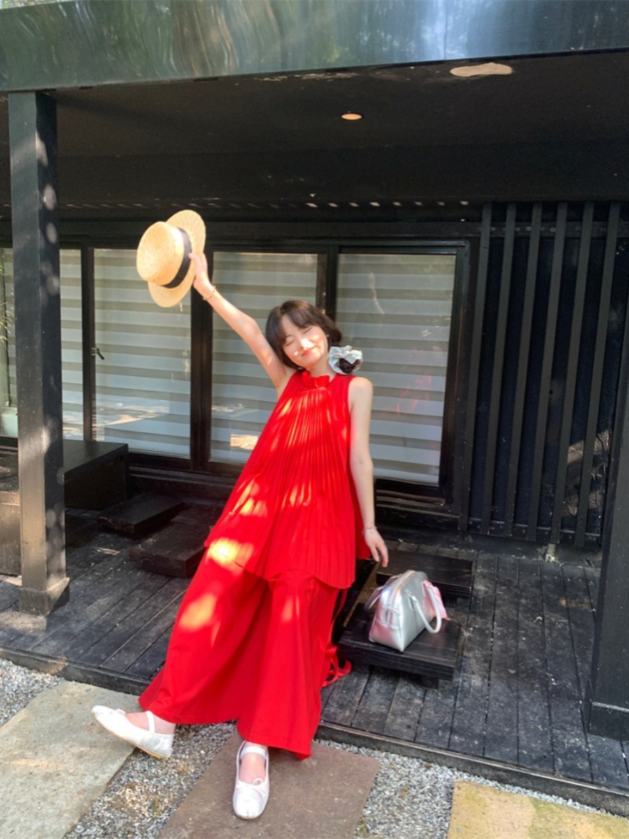 | nameOriginal | 2023 New Fashion suit Design Pleated Strap Sleeveless Top Women's Summer Loose Wide Leg Pants Two-piece Set |