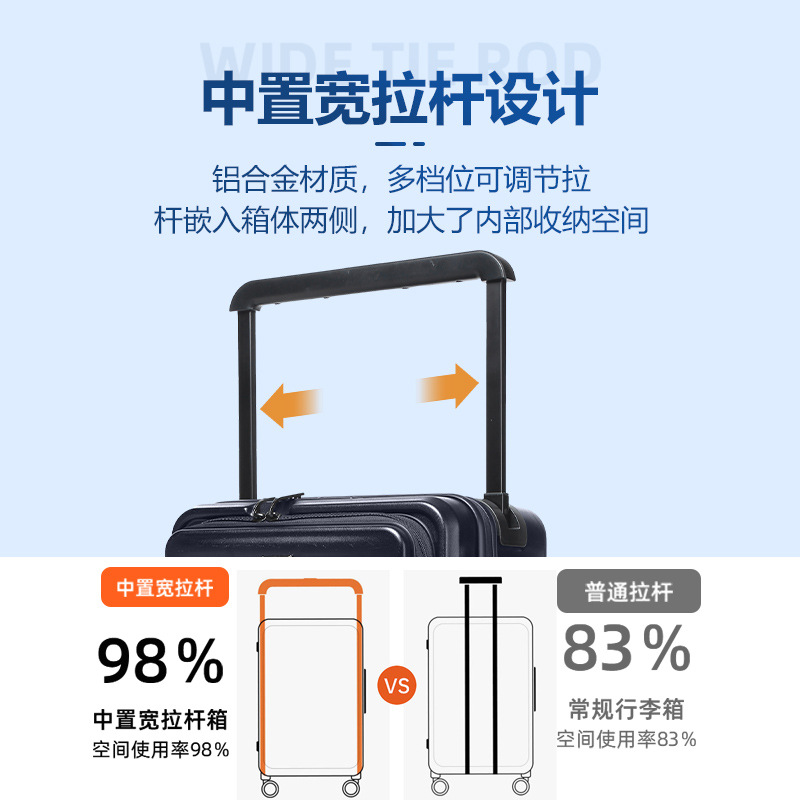 | nameOriginal | 2023 new front open cover suitcase middle wide pull rod expansion trolley case light luxury luggage large capacity boarding  |