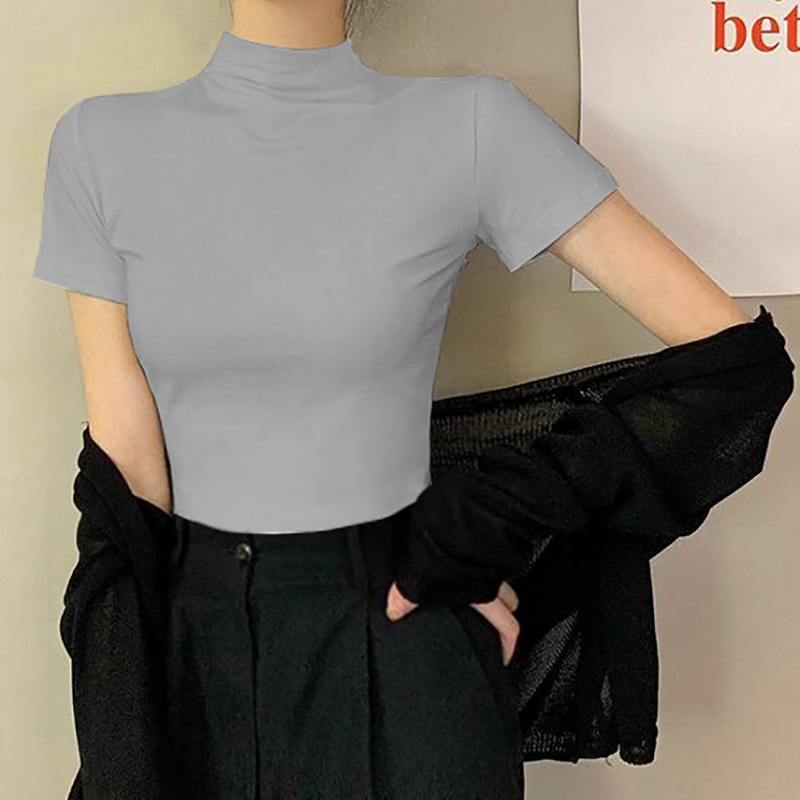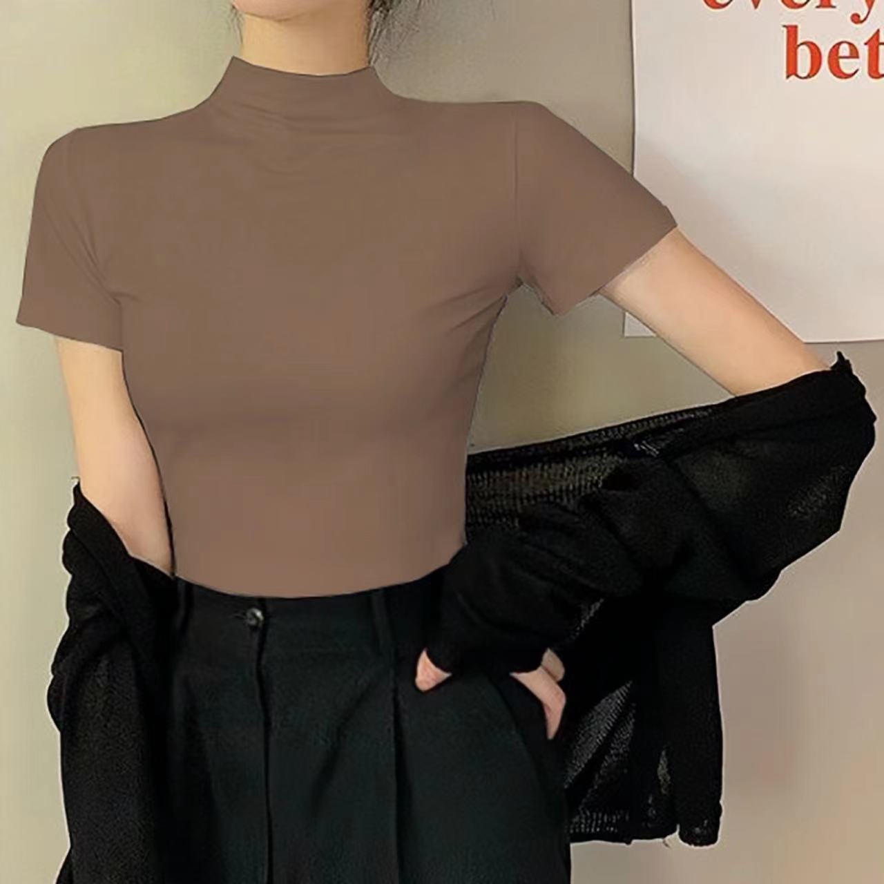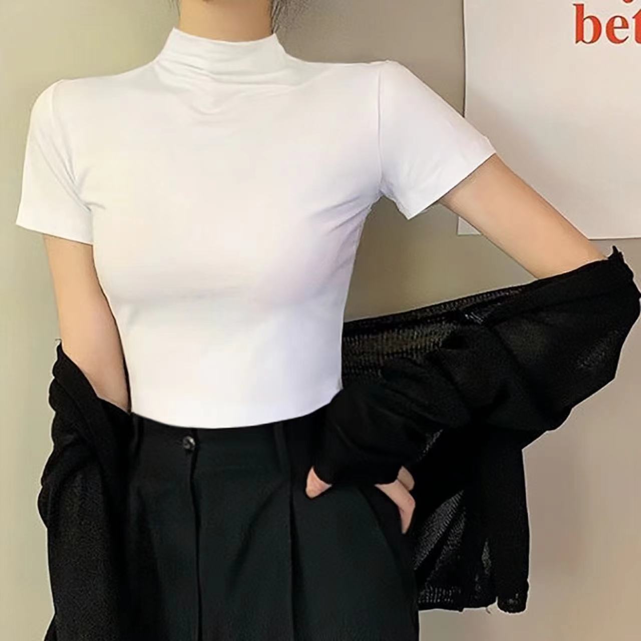 | nameOriginal | 2023 new half turtleneck bottoming shirt Women's T-shirt short sleeve Spring and Autumn Summer multi-color slim temperament niche inner top |