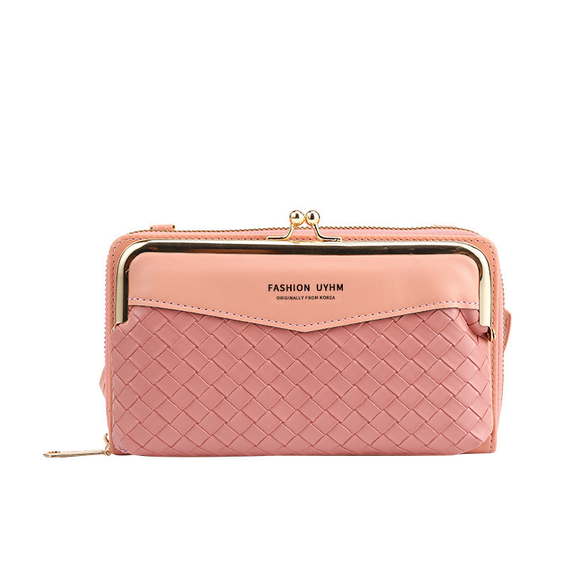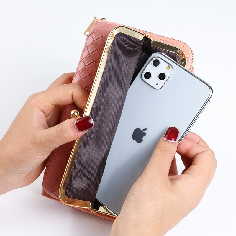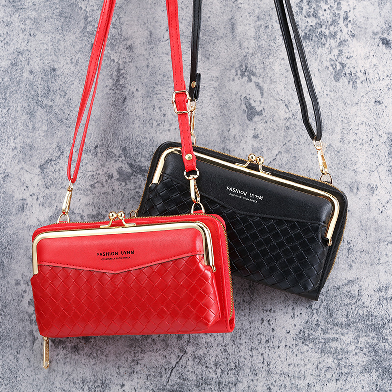2023 new horizontal woven pattern rhombus women's fashion stitching mobile phone card bag all-match shoulder Korean style women's bag