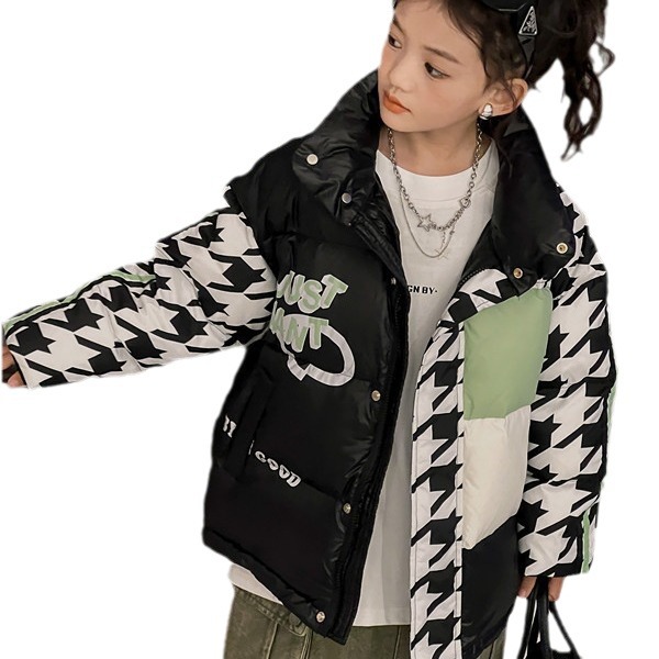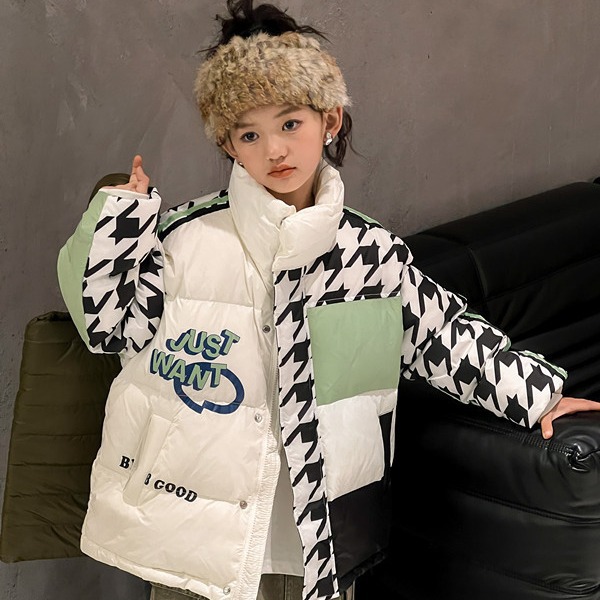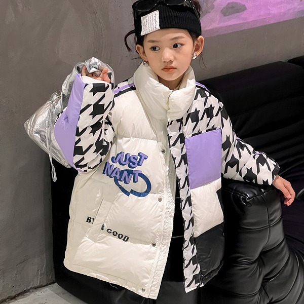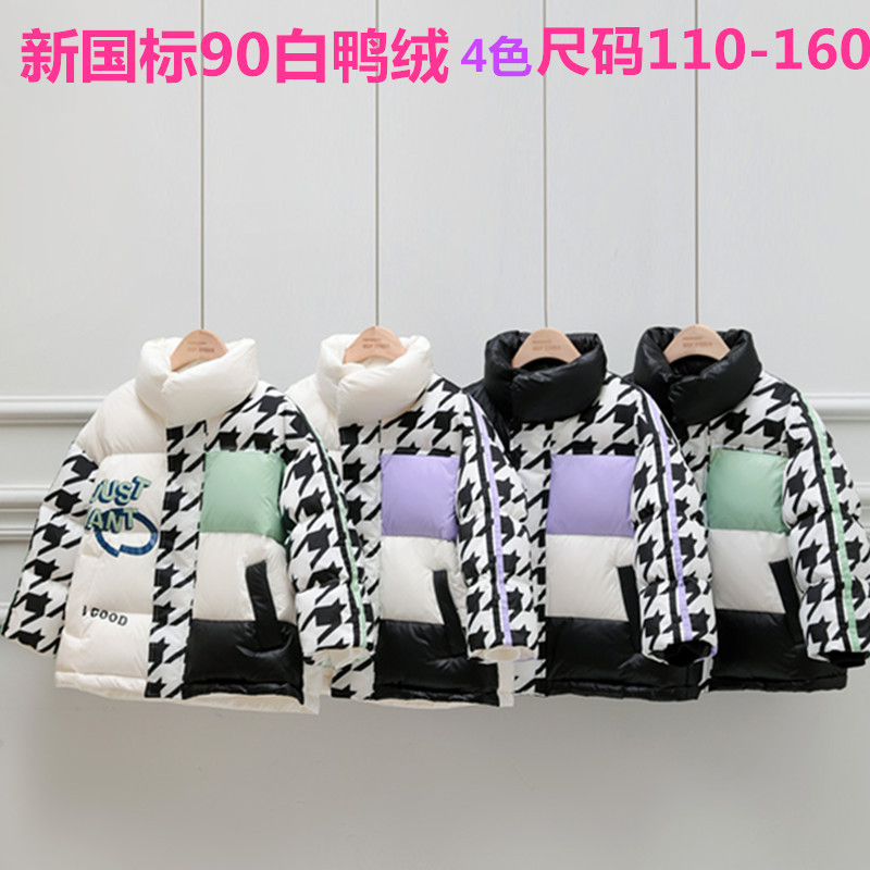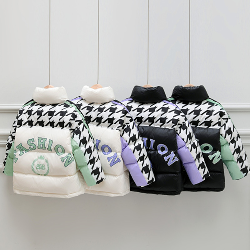 | nameOriginal | 2023 new houndstooth contrast color children's 90 white duck down jacket men's and women's clothing fashionable stand collar coat in stock |