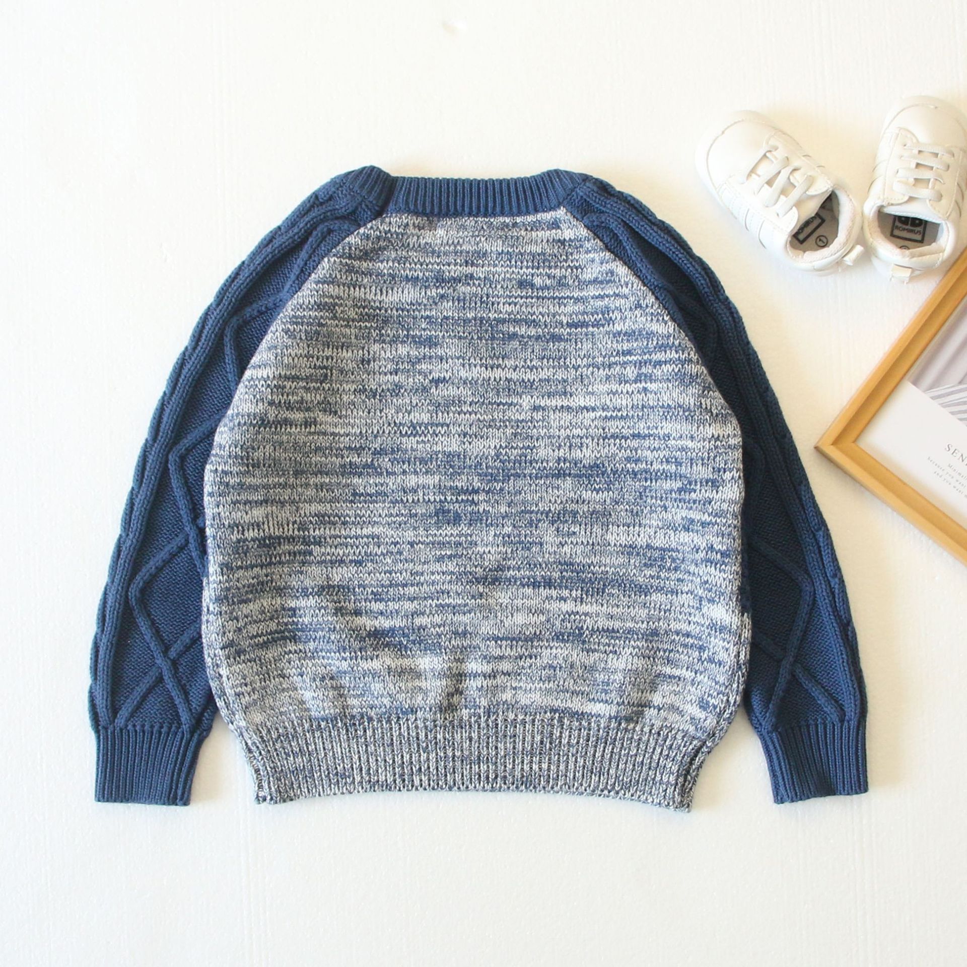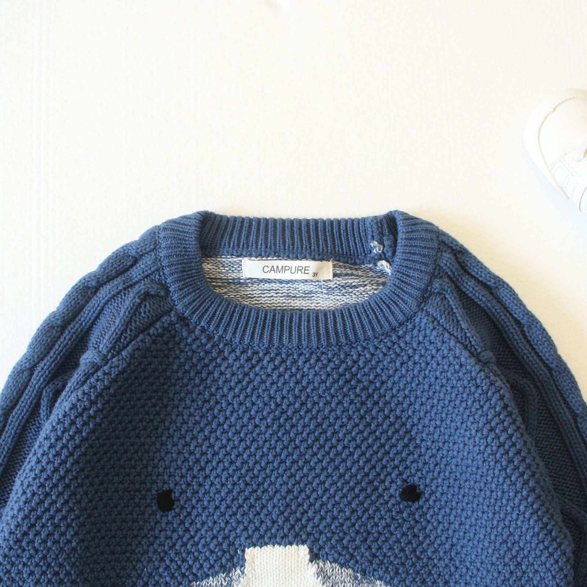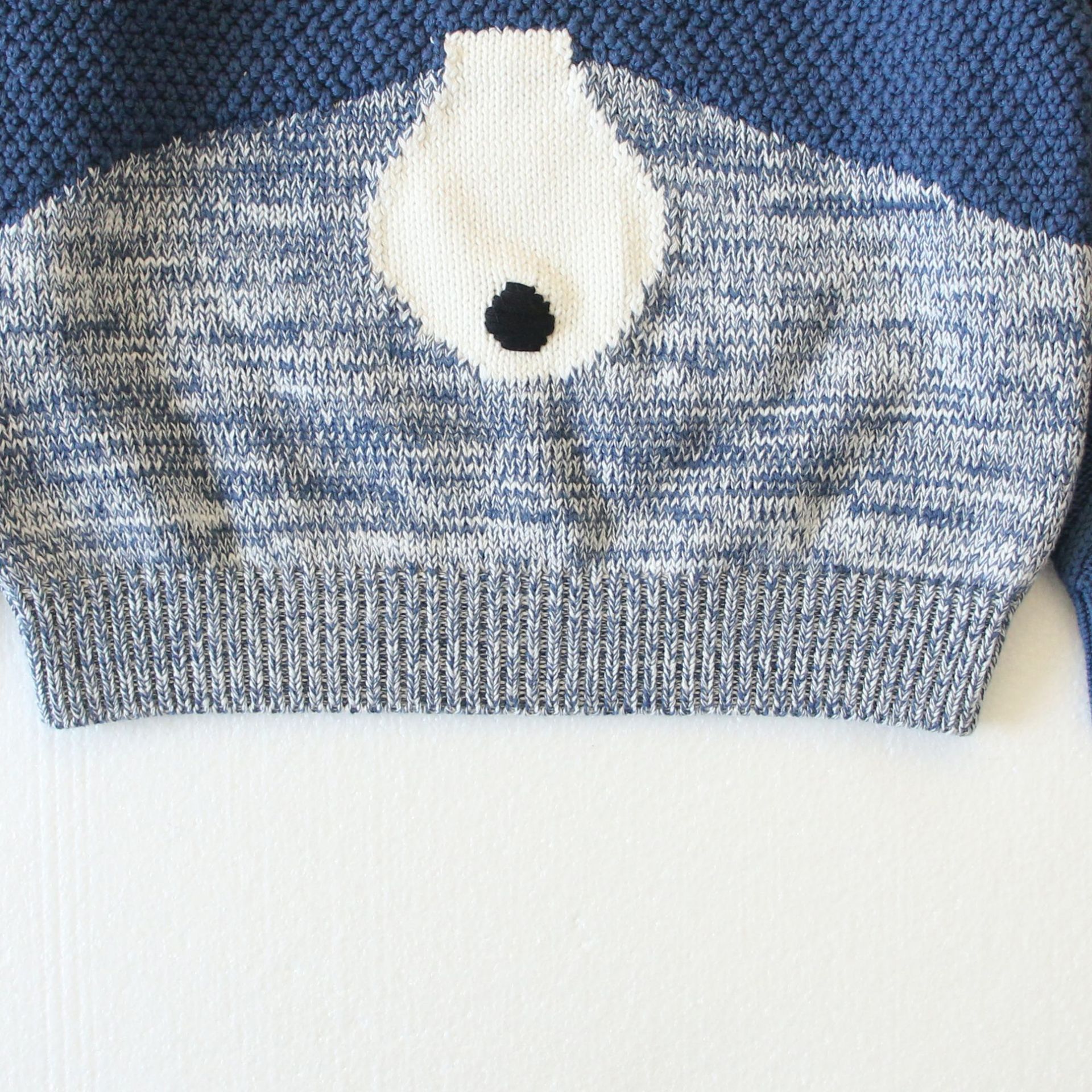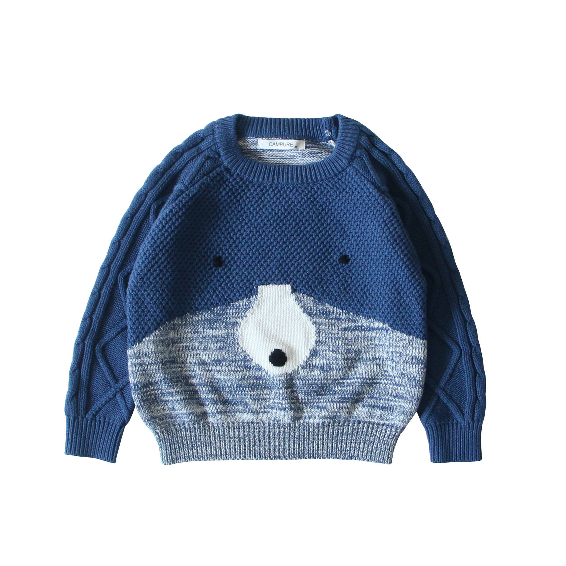 2023 New Knitted Children’s Autumn and Winter Pullover Pure Cotton Young Men’s and Women’s Cute All-match Cartoon Polar Bear Face Stitching