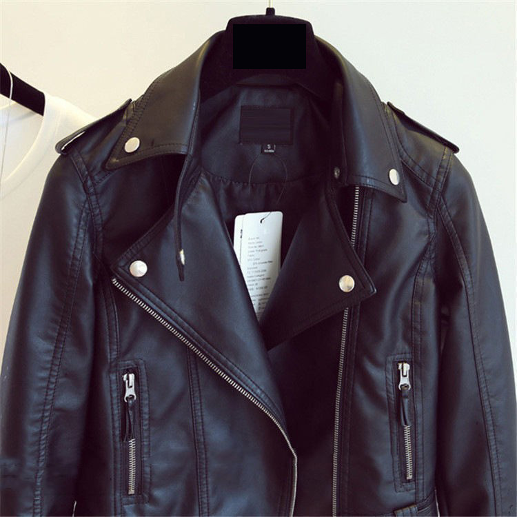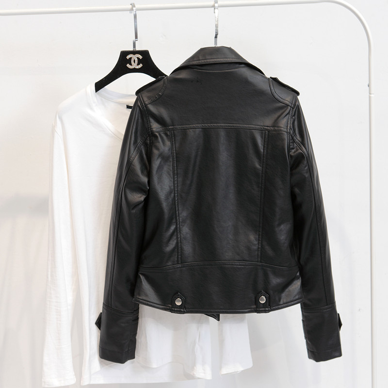 2023 New Korean Style All-match Small Coat PU Leather Women's Short Spring and Autumn Slim-fit Lapel Motorcycle Leather Jacket Trendy