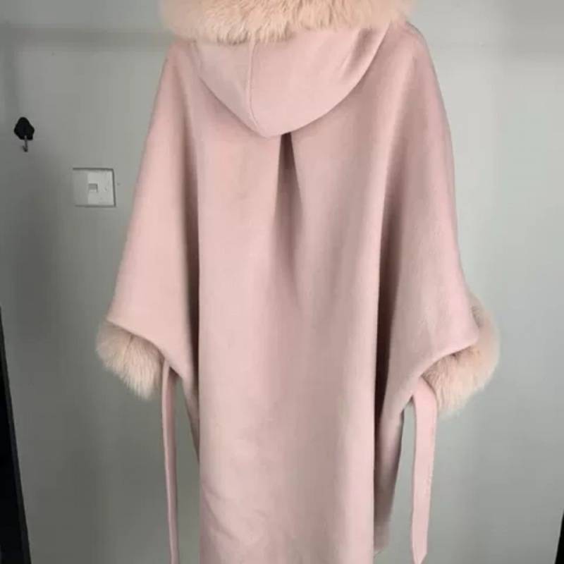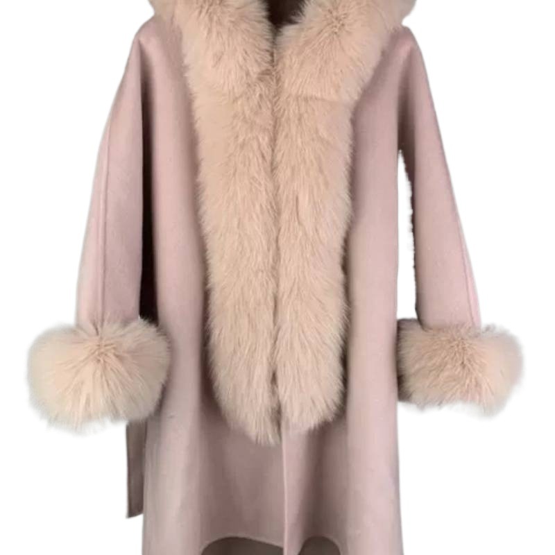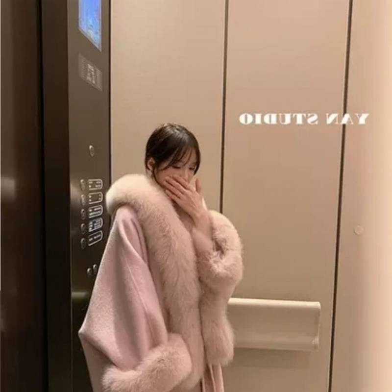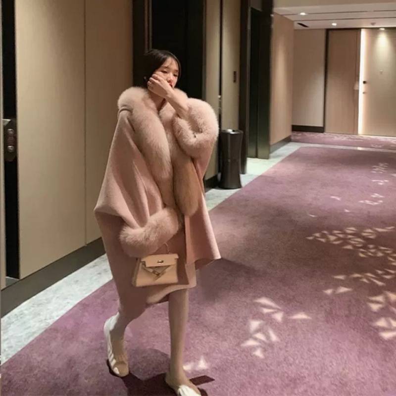2023 new Korean style double-sided alpaca velvet lazy fox fur cloak double-sided woolen mid-length overcoat for women