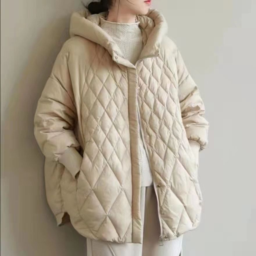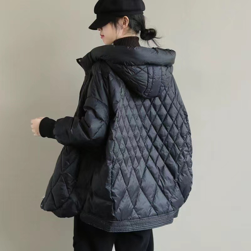| nameOriginal | 2023 new mid-length European goods plus size lightweight hooded Korean style diamond-shaped Plaid artistic loose white duck down outer |