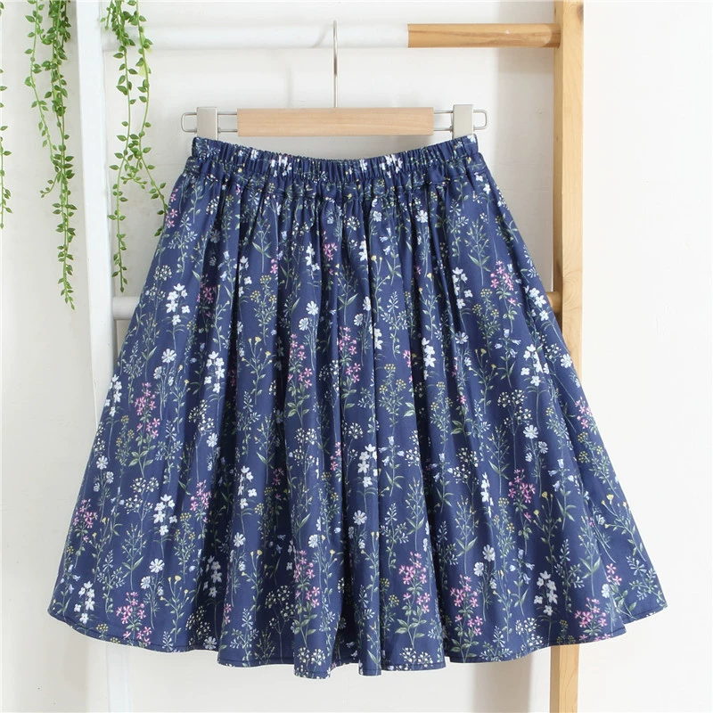 | nameOriginal | 2023 new navy blue floral student cotton and linen skirt |