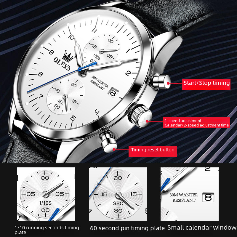 2023 New Oli Shi Brand Watch Multifunctional Quartz Watch Business Casual Simple Thin Men's Watch