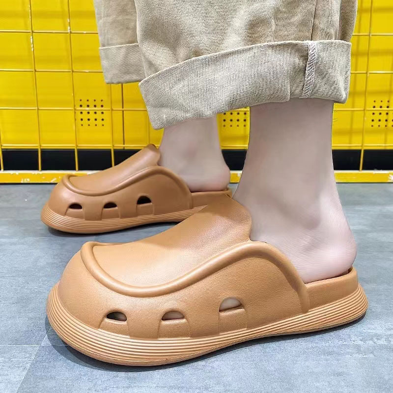 2023 New Slippers Summer Home Fashion Couple Plastic Non-slip Sandals and Slippers Covered Top Outer Wear Thick Sole Cave Shoes