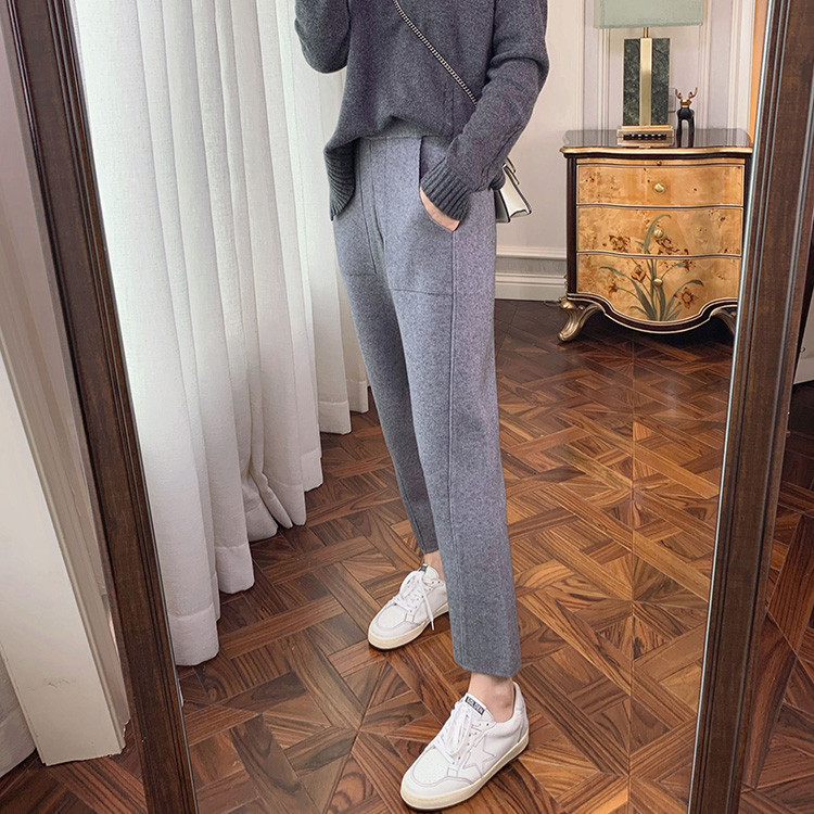 | nameOriginal | 2023 new spring and autumn loose straight wide-leg pants Internet celebrity casual white knitted radish grandma pants female fashion |
