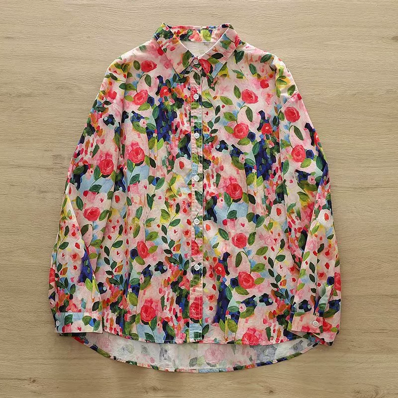 | nameOriginal | 2023 New Spring and Autumn New Rose Flower Long Sleeve Shirt Women's Casual Literary Niche Flower Shirt Top POLO Collar |