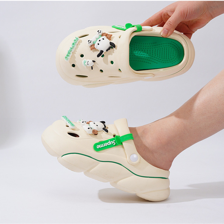 2023 New Style Hole Shoes Women's Summer Outer Wear Soft Bottom Covered Toe Sandals and Slippers Women's Non-Slip Fashionable Thick Bottom Feeling