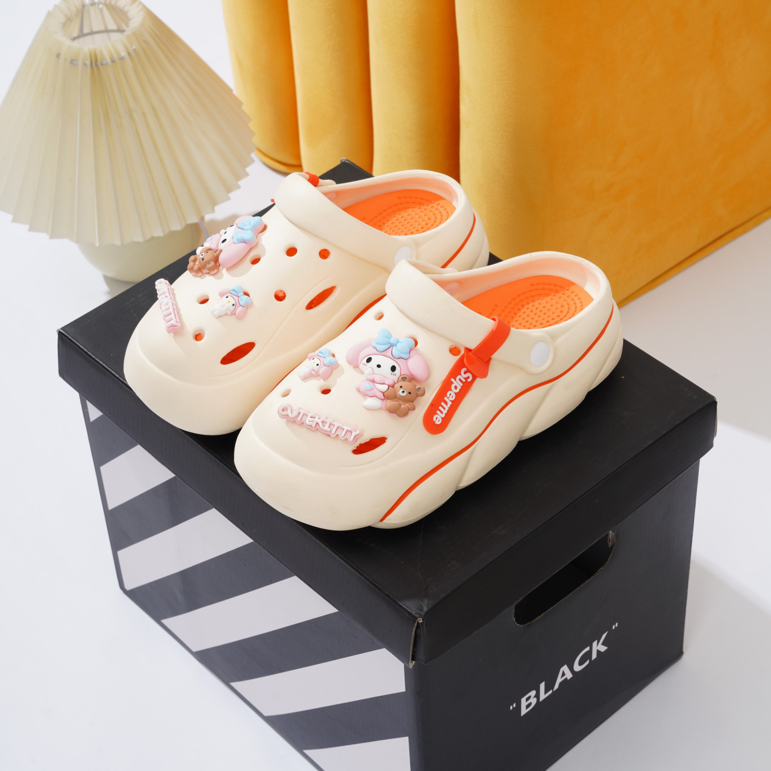 2023 New Style Hole Shoes Women’s Summer Outer Wear Soft Bottom Covered Toe Sandals and Slippers Women’s Non-Slip Fashionable Thick Bottom Feeling