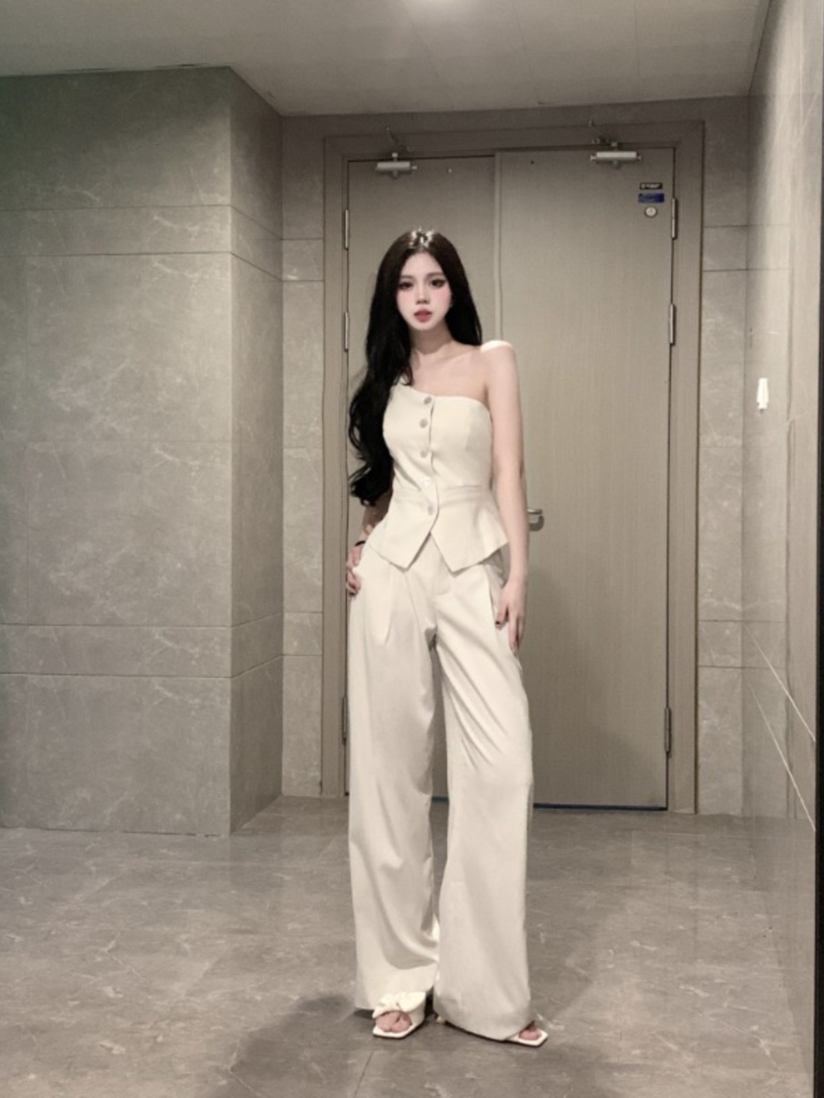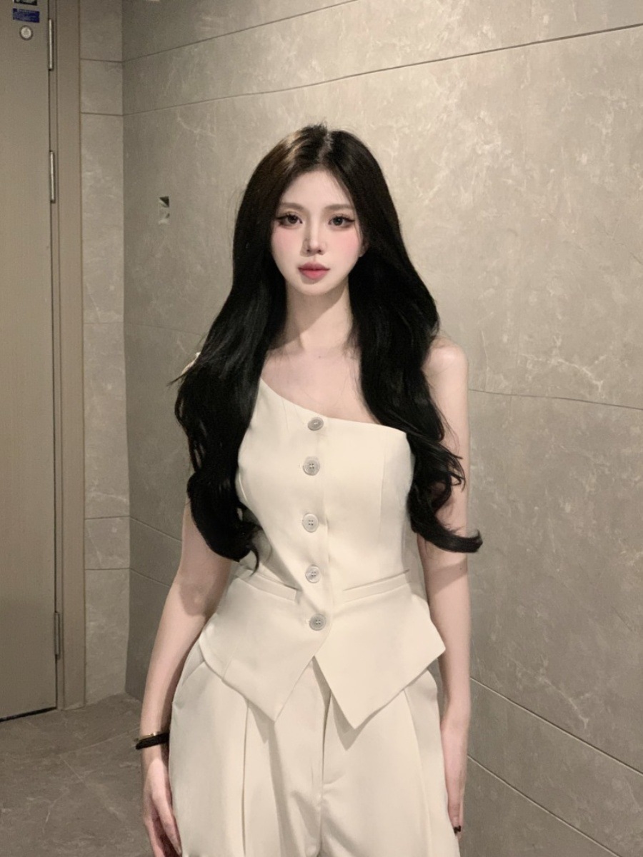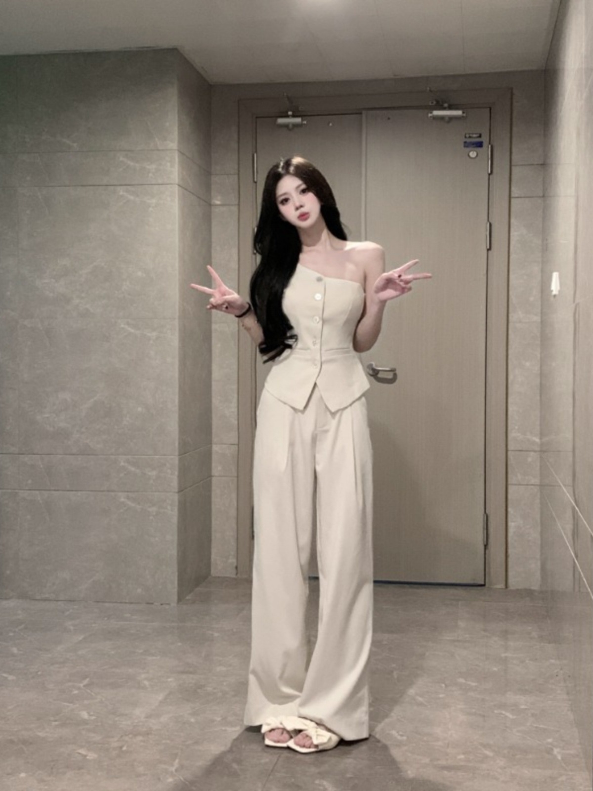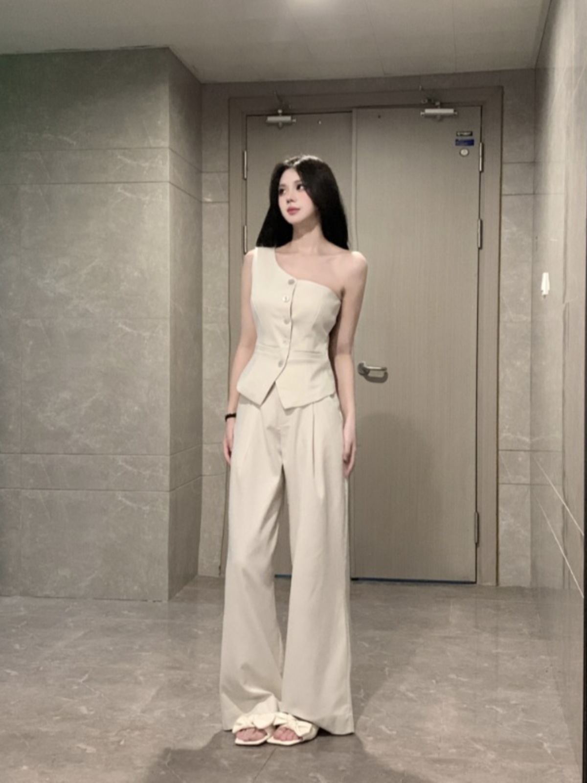 | nameOriginal | 2023 New Style Temperament suit Design Sense Inclined Shoulder Vest Women's Summer Suit Floor Wide-leg Pants Two-piece Set |
