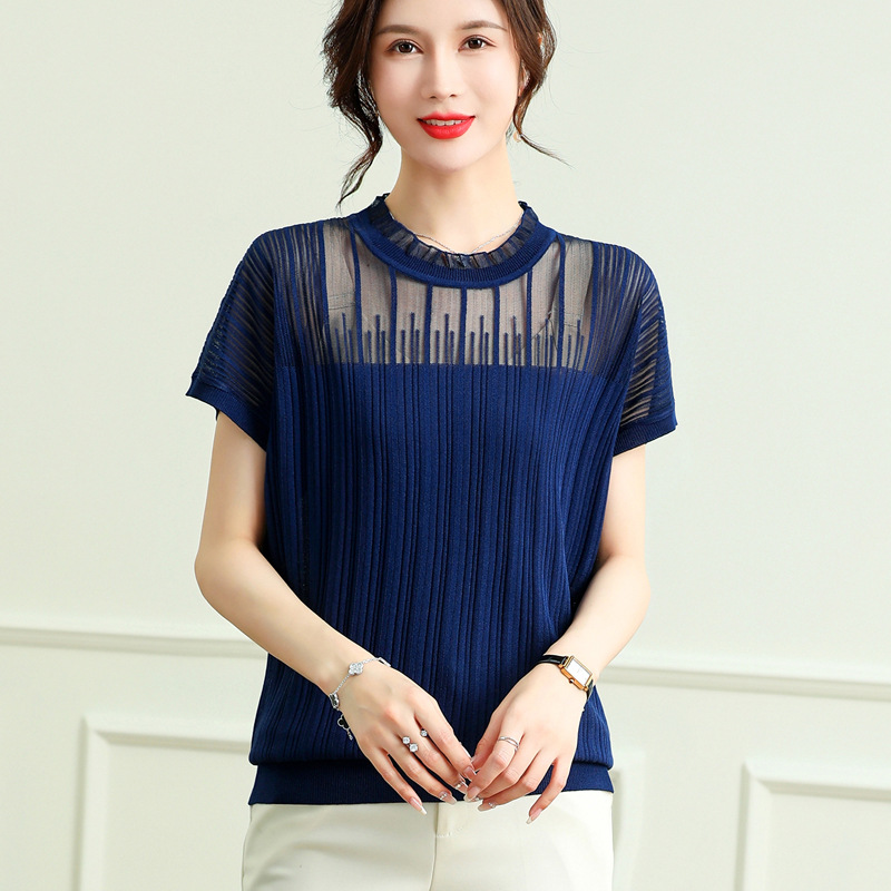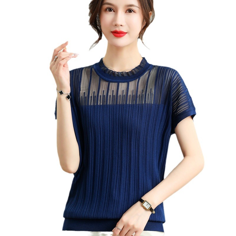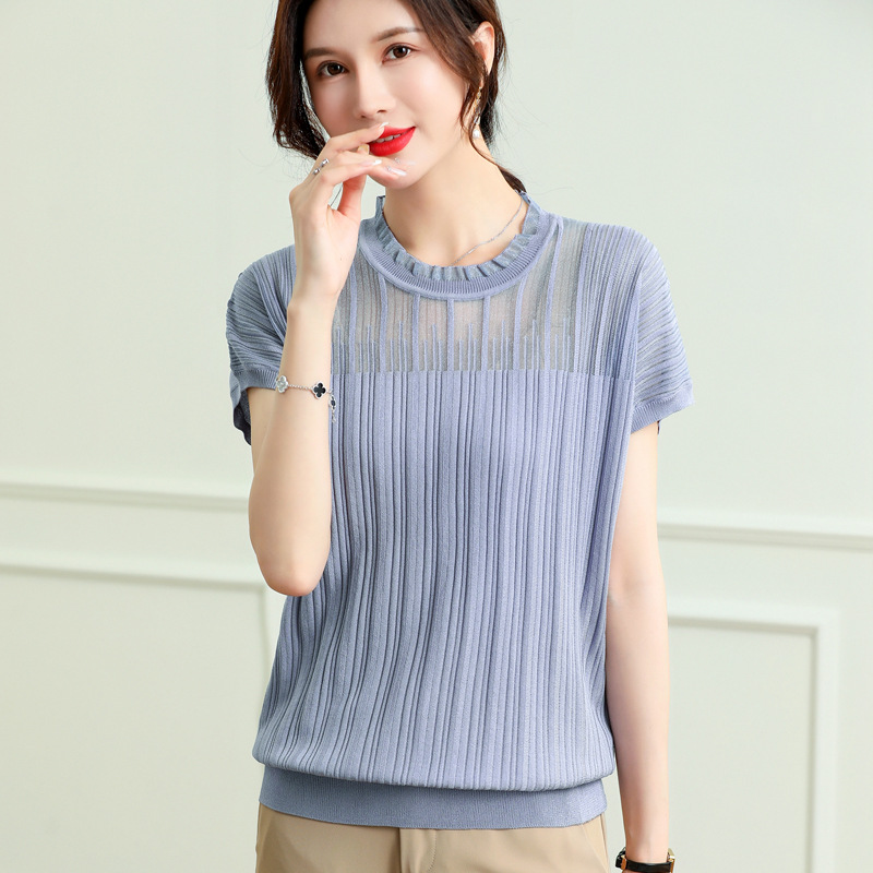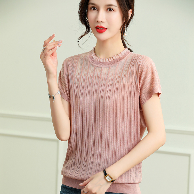 | nameOriginal | 2023 New Style Young Women's Western Style Ice Silk Short Sleeves 40-Year-Old Middle-Aged Women's Summer Knitted T-Shirt with Wood-Ear Top |