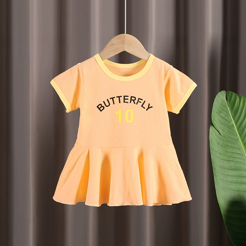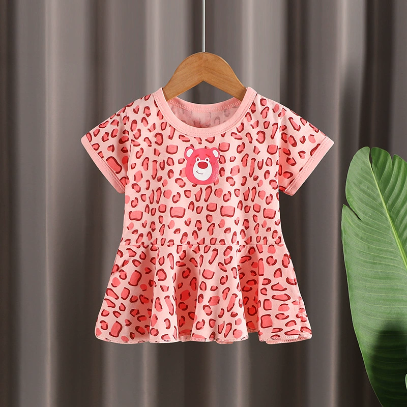 2023 new summer girls' dress, fashionable baby short-sleeved princess dress, baby skirt, casual cotton nightgown